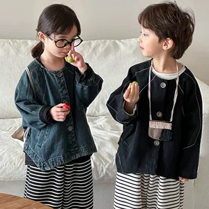 Детская джинсовая куртка-кардиган на весну-осень 2025 года, универсальная, повседневная, однобортная