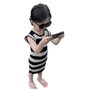 Летнее платье-поло с короткими рукавами для девочек, летняя полосатая юбка трапециевидной формы для маленьких девочек, горячий стиль интернет-знаменитостей, дропшиппинг