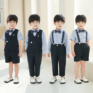 Детский костюм-костюм Платье для мальчика Летнее платье для девочек-цветочниц Маленькое платье для фортепиано в британском стиле Красивый костюм