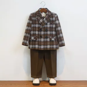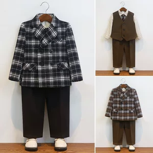 Детский костюм осенне-зимний новый британский клетчатый маленький костюм пальто для мальчиков