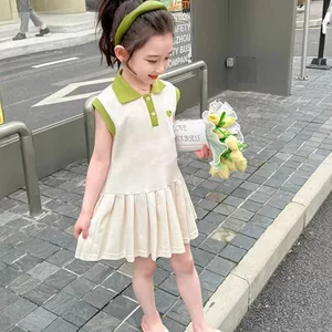 Летнее платье для девочек, одежная принцесс юбка, тонкий сплошной цвет, поло, юбка с рукавами, юбка, внешняя торговля, детская одежда оптом