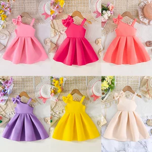 Популярное трансграничное платье для девочек, летняя новинка 2026 года, в стиле Amazon, стильное, с бантом, милое, на бретельках, платье принцессы