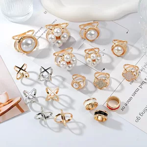 Трансграничное кольцо с горячей весной Шелковая Пряжка для полотенца Простой жемчужный шарф Кольцо Изысканные геометрические украшения Универсальные