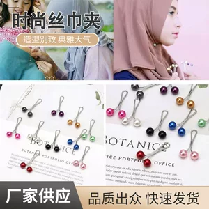 Трансграничная Внешняя торговля Взрывы Женская мусульманская шелковая Пряжка для полотенец Модный платок Зажим для шеи Женский жемчужный шелковый шарф Зажим Маленькая булавка