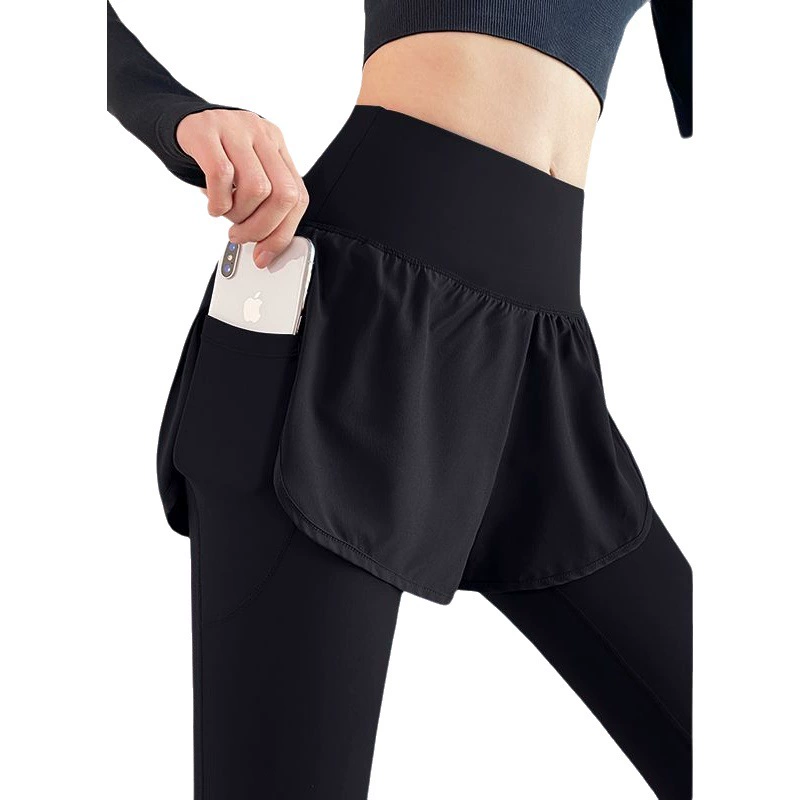 Поддельные брюки для фитнеса из двух частей, женские эластичные узкие брюки для бега с высокой талией, юбка, быстросохнущие спортивные брюки, Осенние штаны для йоги, похудение