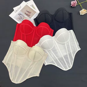 Трансграничный Amazon AliExpress Европейская и Американская сексуальная сетка пряжа Сшитый бюстгальтер с поперечным дизайном рыбьей кости Женский корсет