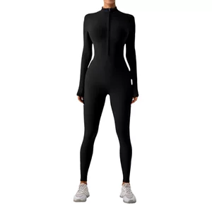 Кросс-бордерный комбинезон для йоги с длинными рукавами и молнией Amazon, облегающий комбинезон для фитнеса и спорта высокой интенсивности