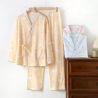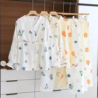 Пижама из чистого хлопка для женщин, повседневная домашняя одежда с длинными рукавами, комплект из двух предметов, одежда для беременных, мягкая, для женщин среднего возраста.