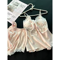 Летний шелковый тонкий костюм-тройка с короткими рукавами, пижамы из ледяного шелка для женщин, которые можно носить на улице, крутая весенне-осенняя домашняя одежда большого размера