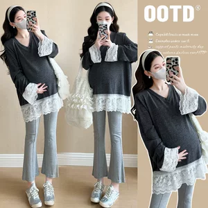 Новинка осени и зимы, женская одежда для беременных, трикотаж из двух частей в Корейском стиле, свободный стильный свитер, модный свитер для беременных с длинными рукавами