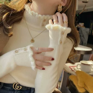 2025 новый женский свитер с высоким воротником, уникальным дизайном и разрезом для выхода в свет.