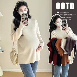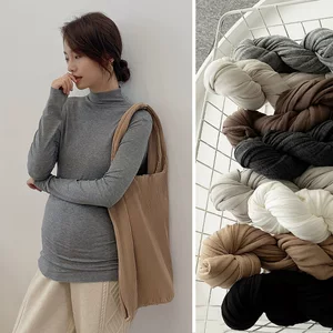Нижняя рубашка для беременных осенью и зимой полувысокий воротник тонное дно с длинными рукавами, осенняя мода сплошной цвет беременные женщины большой размер топ оптом