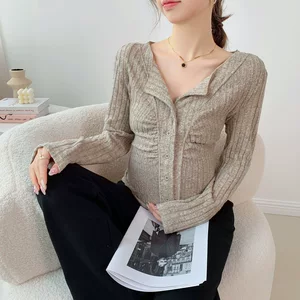 Трикотажный нижний свитер для кормящих весной и осенью и зимой 2025 новая красивая иностранная мода модный свитер топ
