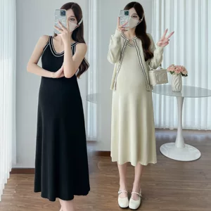 Осенний Новый Модный Эластичный Приталенный кардиган средней длины в западном стиле для беременных, модное трикотажное платье для мамы