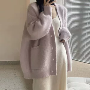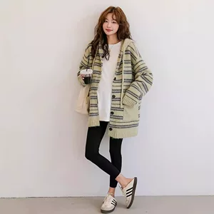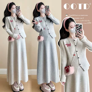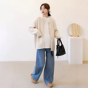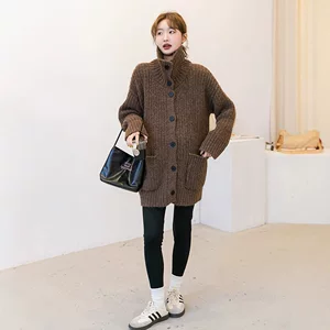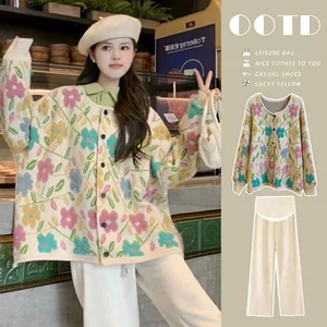 Спот 2024 осень и зима новый минус возраст мода мягкий восковой ленивый ветер утолщение дикого трикотажного кардигана для беременных