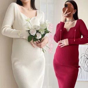 Реальный выстрел новый трикотажный свитер для беременных осенью и зимой дикие нижние рубашки для беременных рубашки послеродовые кормящие рубашки