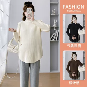 Вязаный свитер для беременных на осень и зиму, новая универсальная базовая кофта, топ для беременных, свитер для кормящих мам, базовая кофта