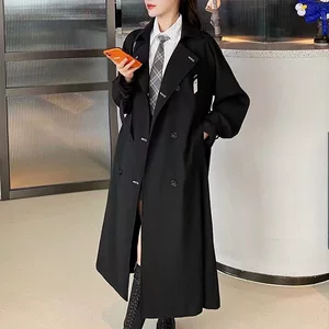 Черная ветровка куртка для маленьких женщин весна и осень 2024 новая средняя длинная модель в британском стиле