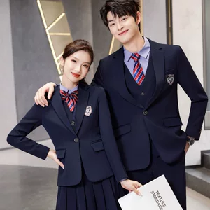 Мужской и женский синий пиджак с длинными рукавами, выпускная форма школьника в консервативном стиле, классная форма, костюм школьной формы