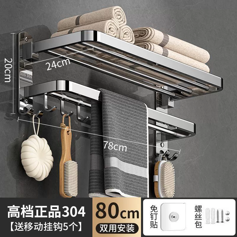 Вешалка для полотенец из нержавеющей стали 304, без перфорации, вешалка для полотенец для ванной комнаты, стеллаж для хранения в ванной комнате, набор аксессуаров для ванной комнаты