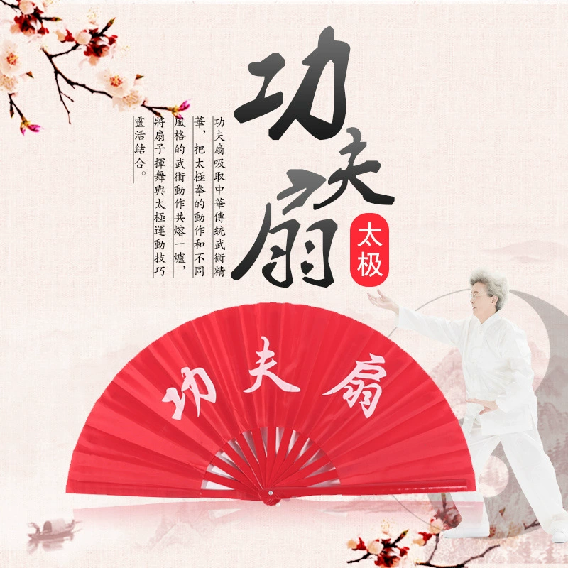 Поклонник Тайцзи Кунг-фу Поклонник Студент Танцор Поклонник Двусторонний вентилятор, веер складной, китайский стиль, боевые искусства, красный веер