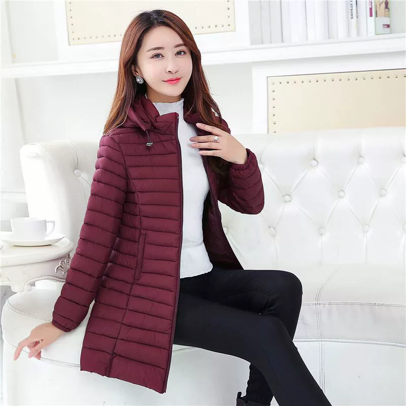 Европейский и американский экспорт 2025 новой женской куртки на хлопковом подкладке, куртки на хлопковом подкладке средней длины с капюшоном, утолщенной тонкой куртки на хлопковом подкладке, высококачественной куртки.