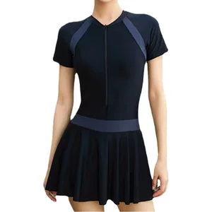 2025 новый студенческий плоский угловой спортивный цельный купальник женский горячий источник с короткими рукавами консервативный продвинутый вид тонкого купальника