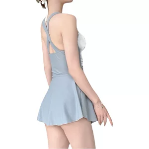 Летний новый цельный цвет контактный купальник сшитый купальник студенческая юбка консервативный купальник с нагрудным ковриком купальник оптовая продажа