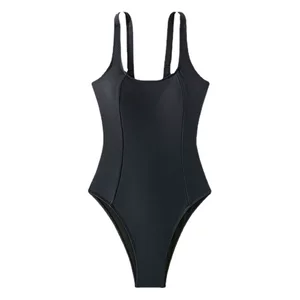 Купальники трансграничные фабричные европейские и американские модные без рукавов с высокой талией, однотонные, на молнии, внешняя торговля, новый цельный купальник для женщин