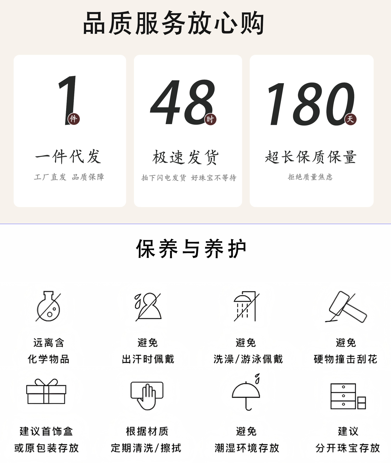 Основной материал из стерлингового серебра S925, удобный и гипоаллергенный, не легко окисляется и не чернеет при длительном ношении, подходит для людей с чувствительной кожей.