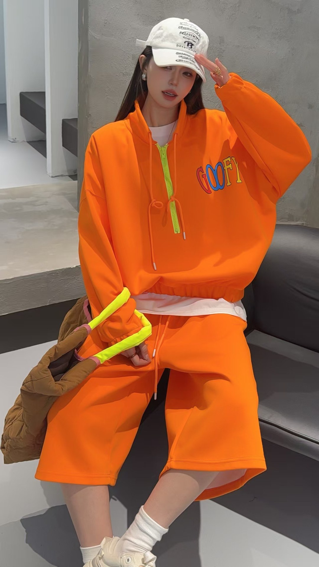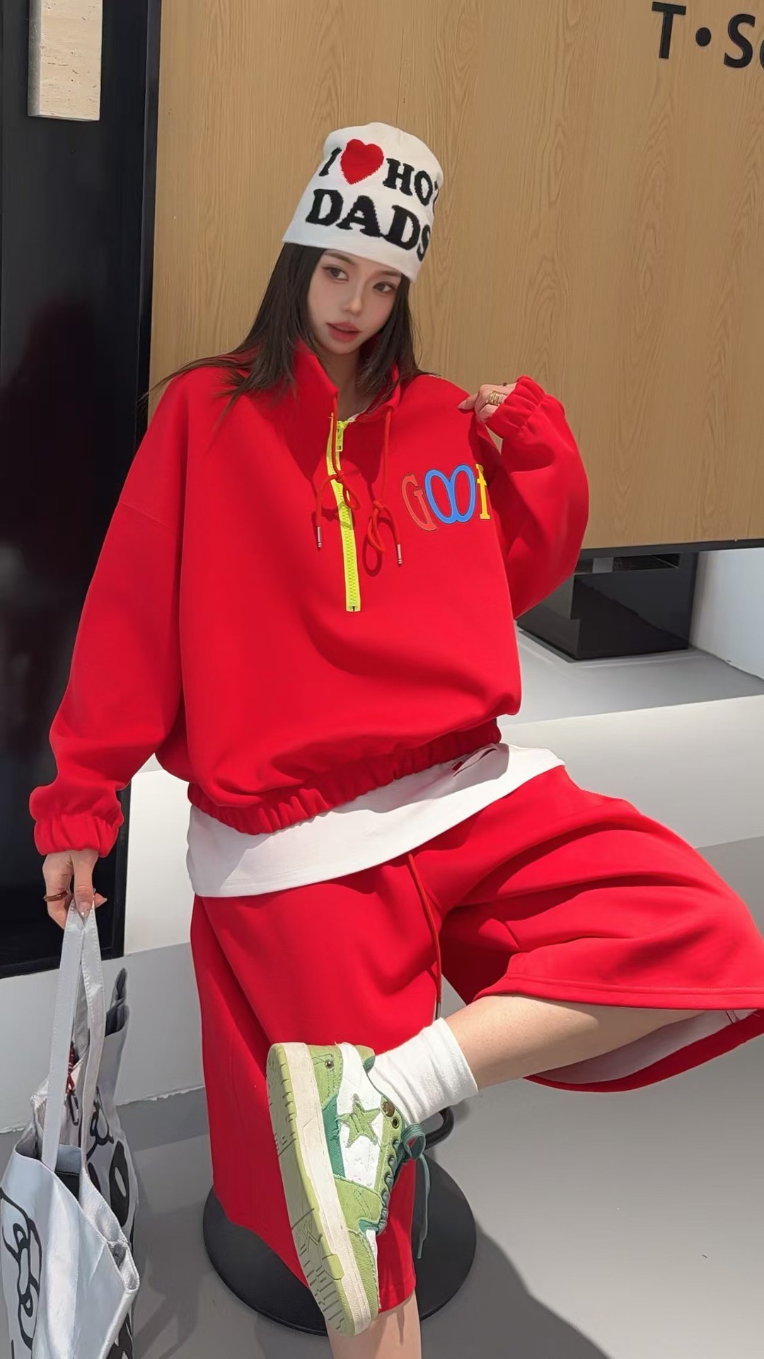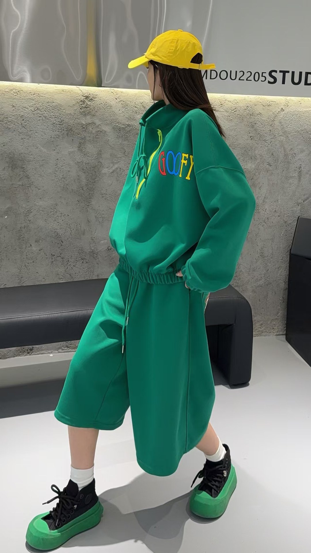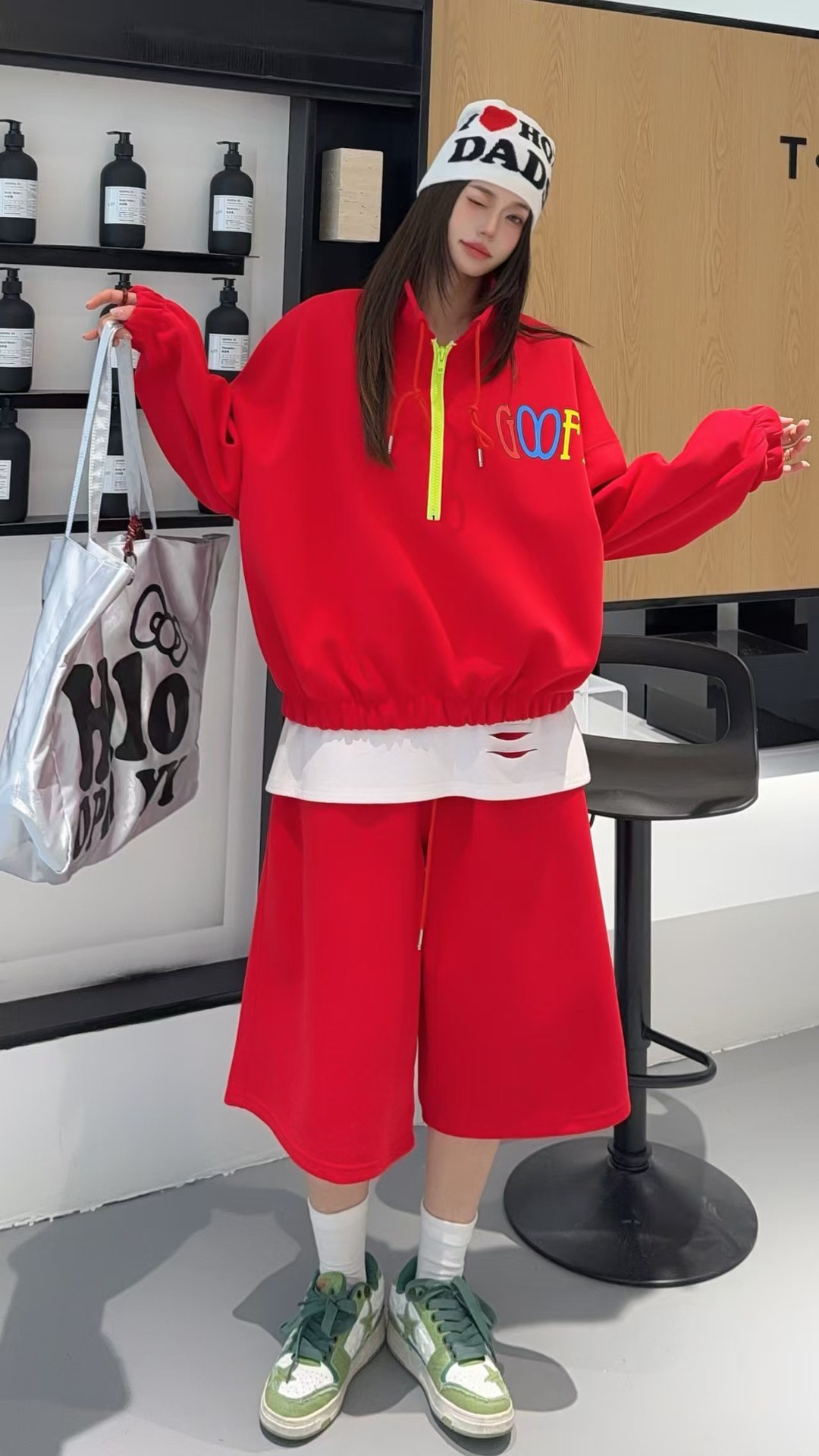 Весенний новый комплект: американский свитшот с завязками, укороченные брюки, женский модный дизайн, свободный крой, большой размер, двухсоставной комплект
