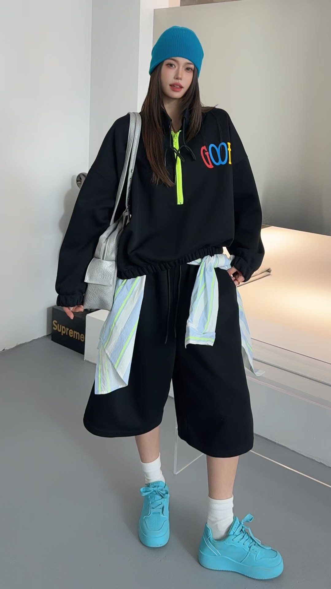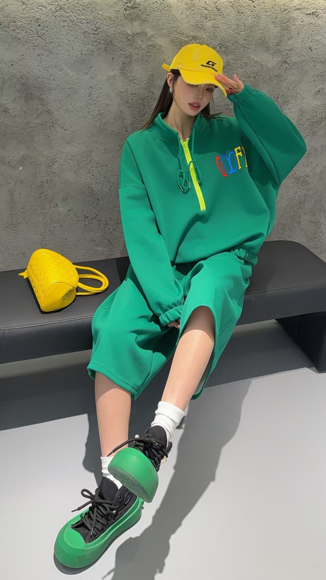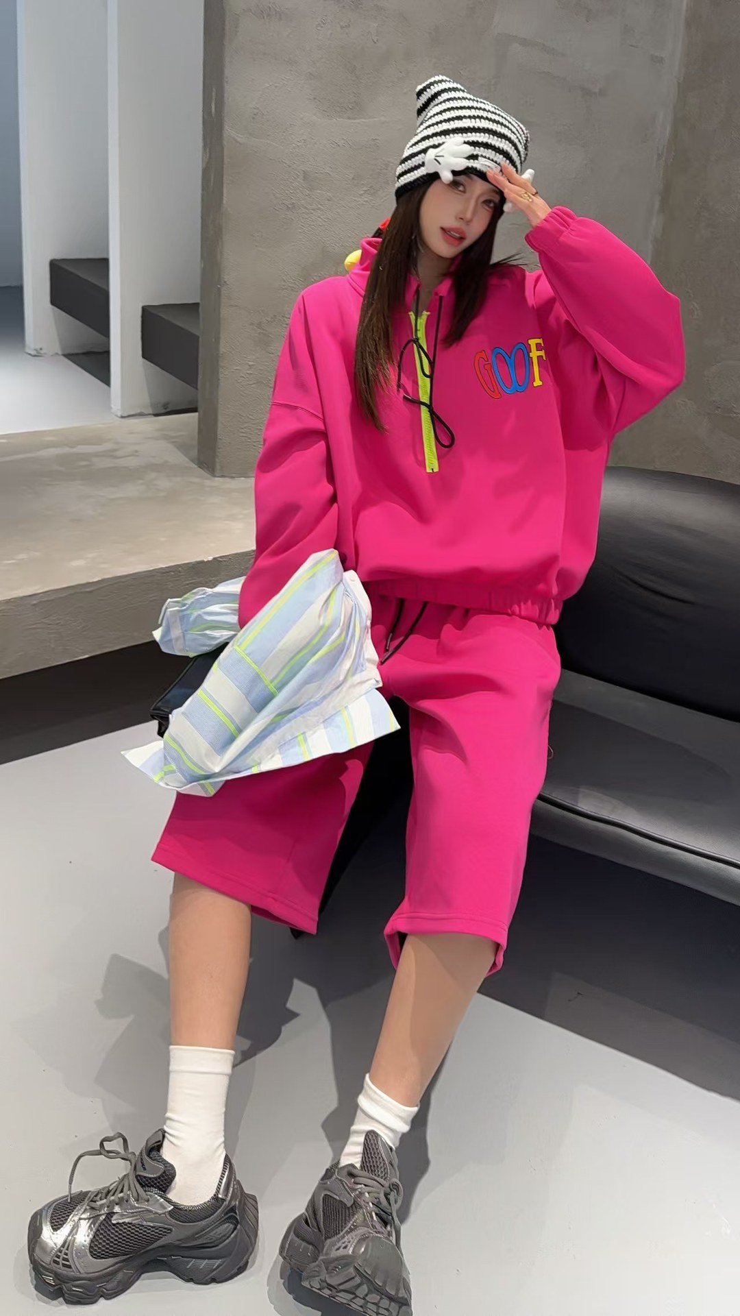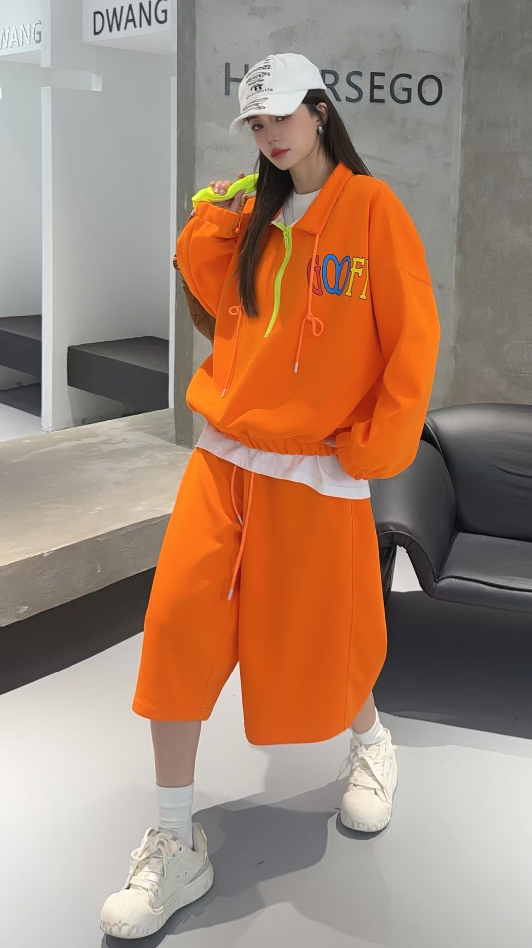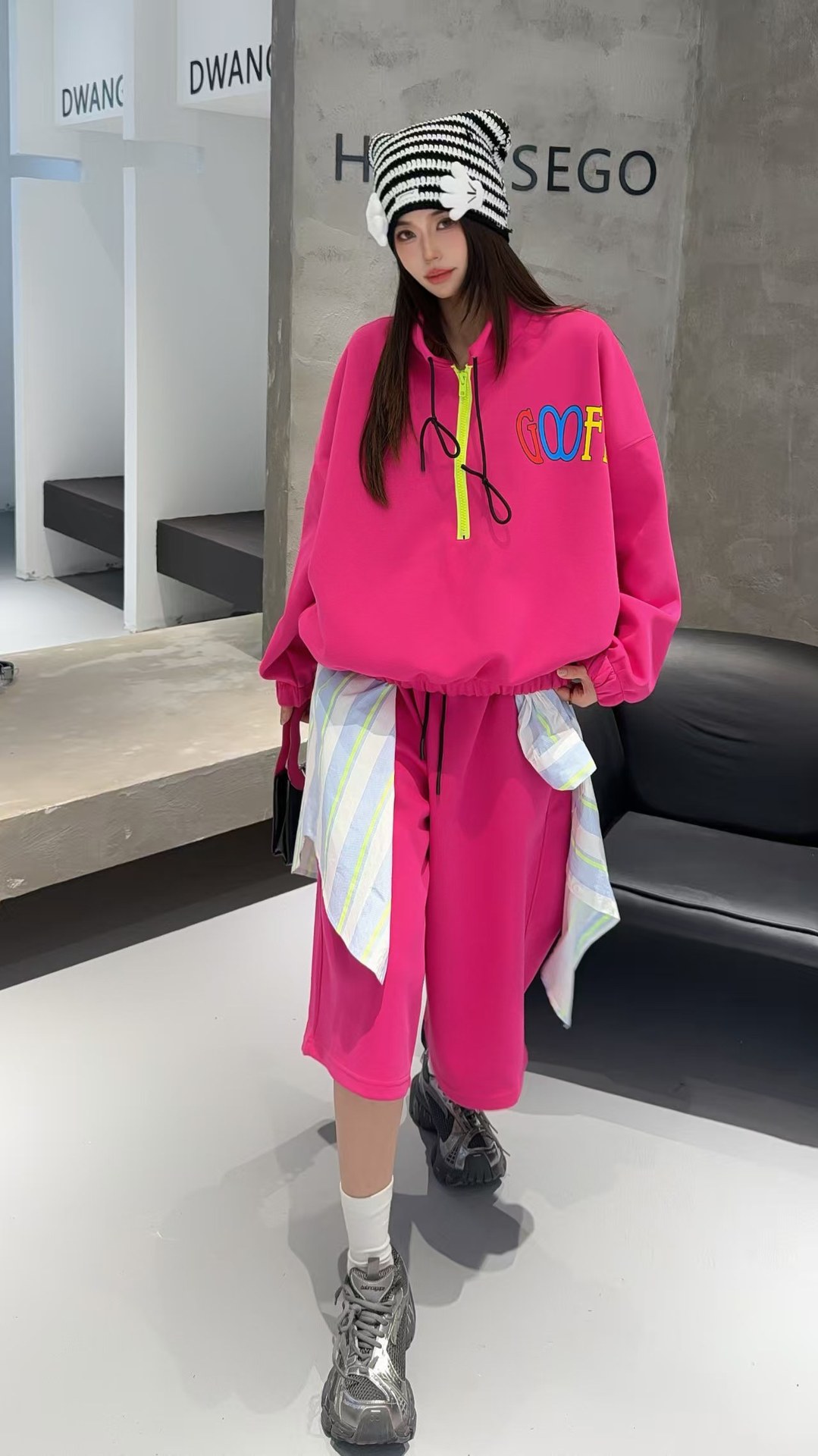 Весенний новый комплект: американский свитшот с завязками, укороченные брюки, женский модный дизайн, свободный крой, большой размер, двухсоставной комплект
