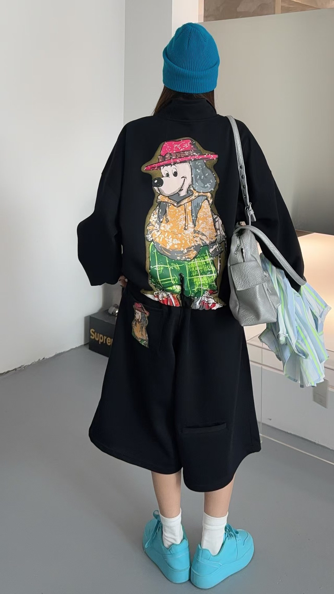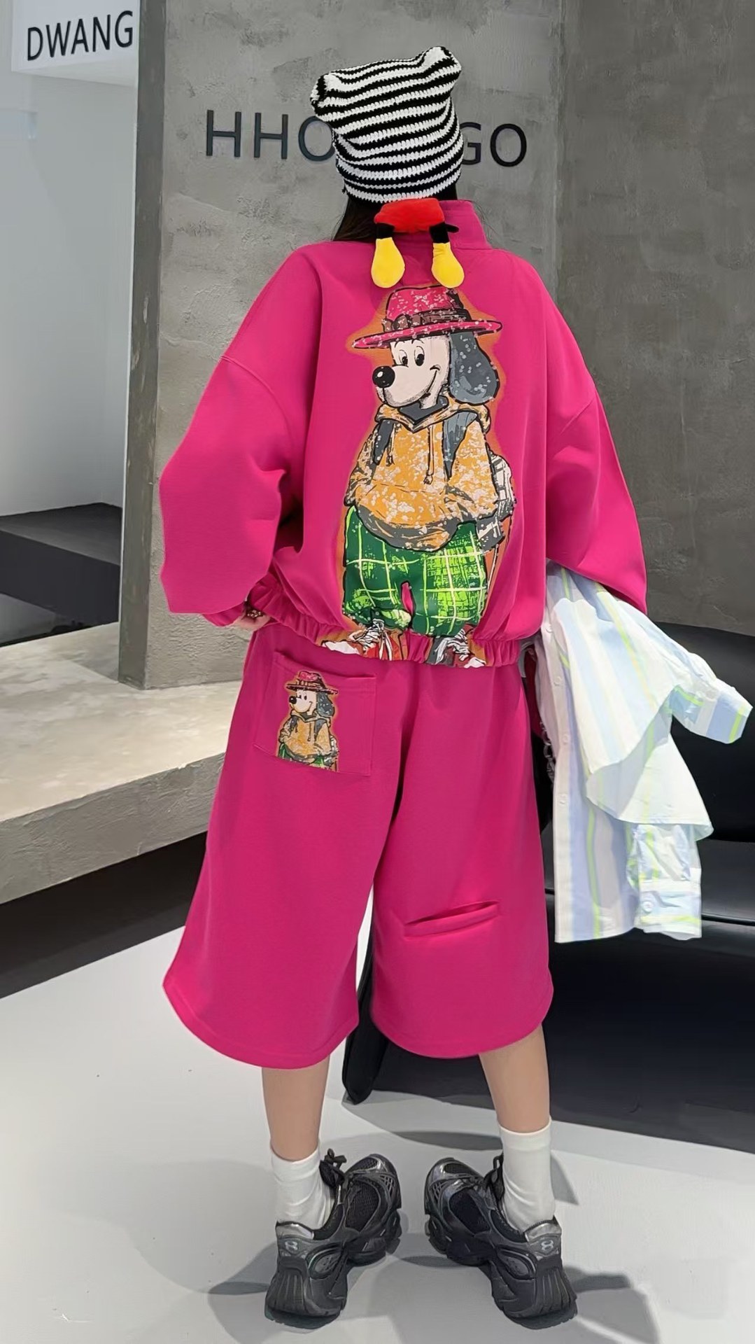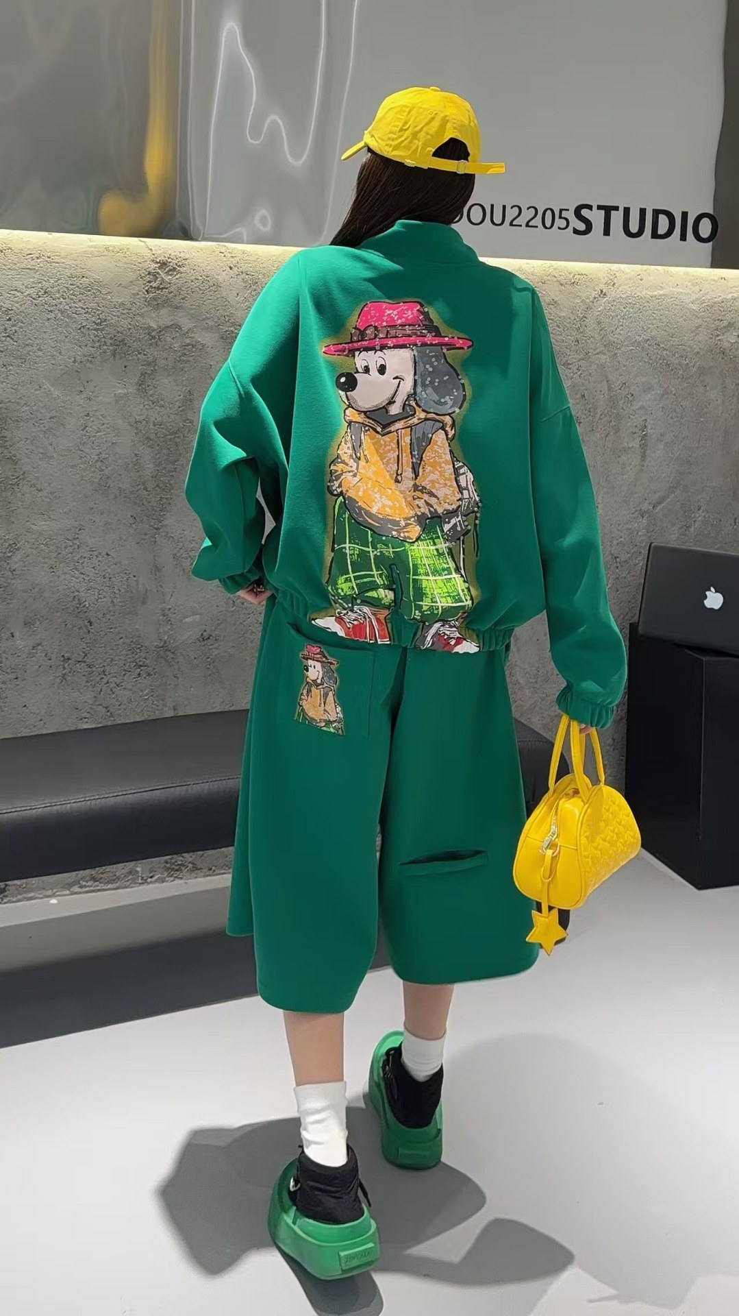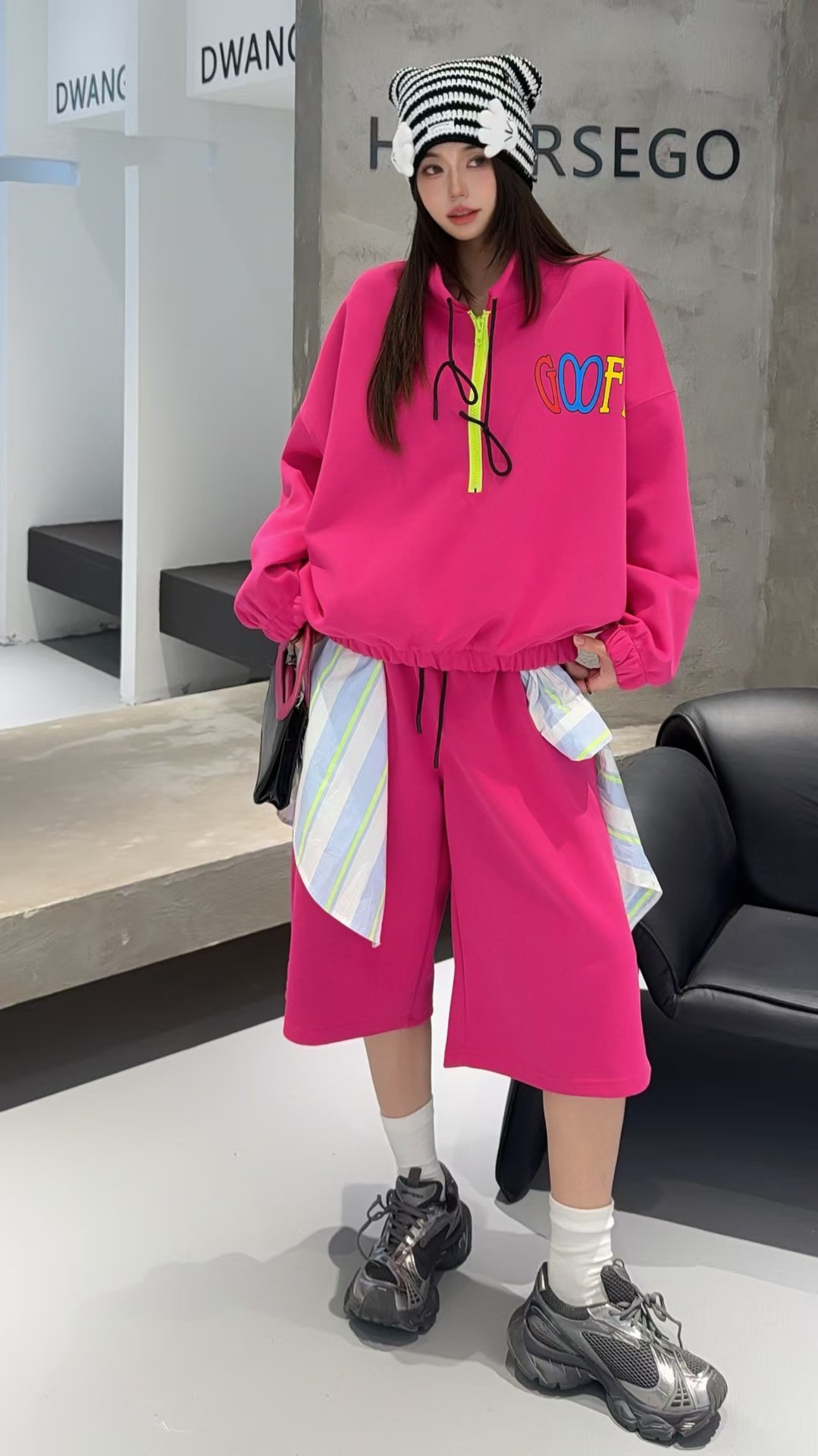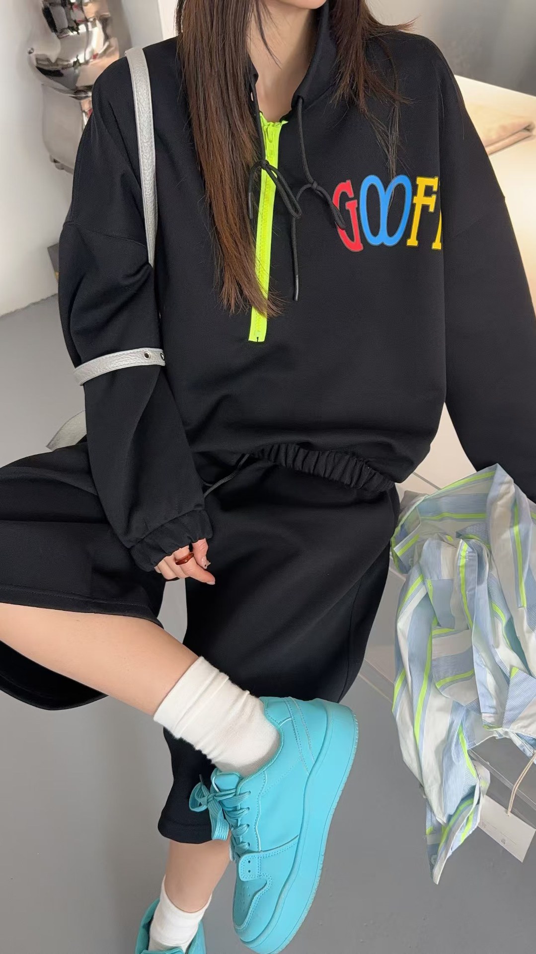 Весенний новый комплект: американский свитшот с завязками, укороченные брюки, женский модный дизайн, свободный крой, большой размер, двухсоставной комплект