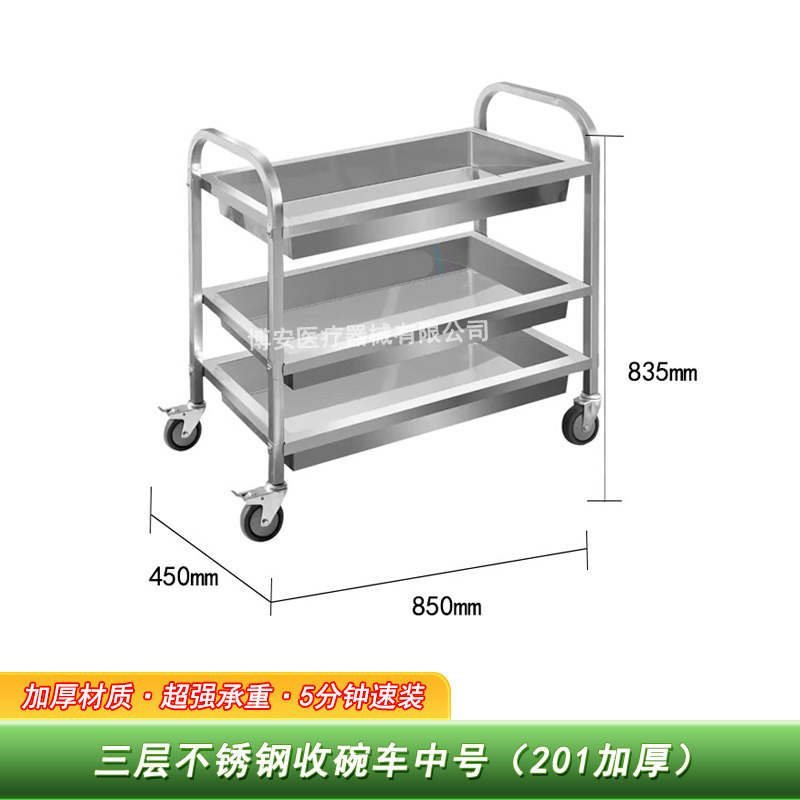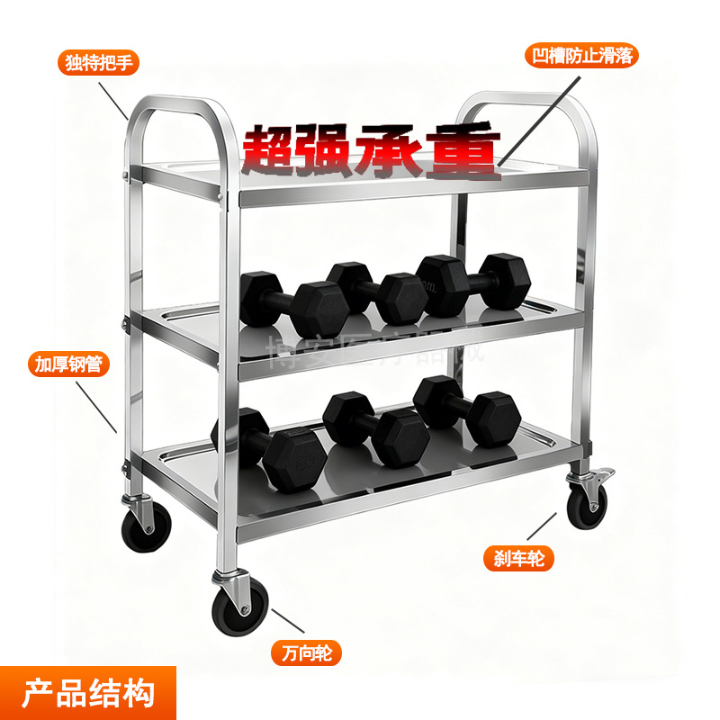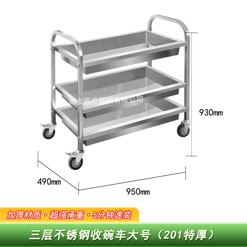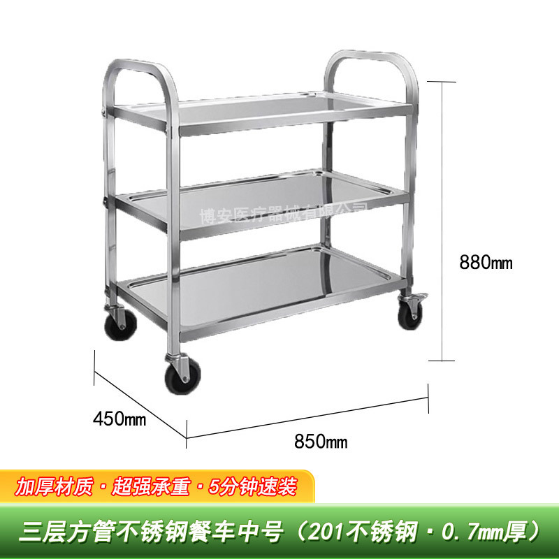 源头工厂不锈钢三层餐车加厚钢管静音轮酒店餐厅摆摊收碗车批发