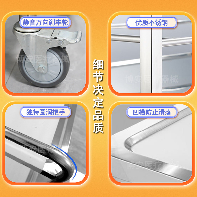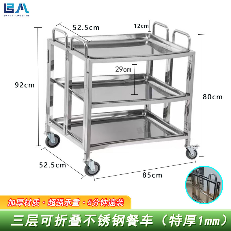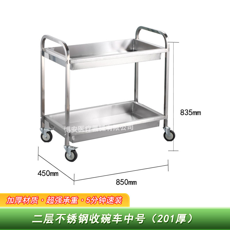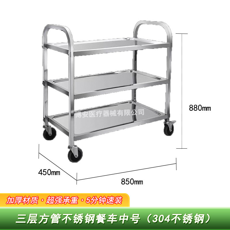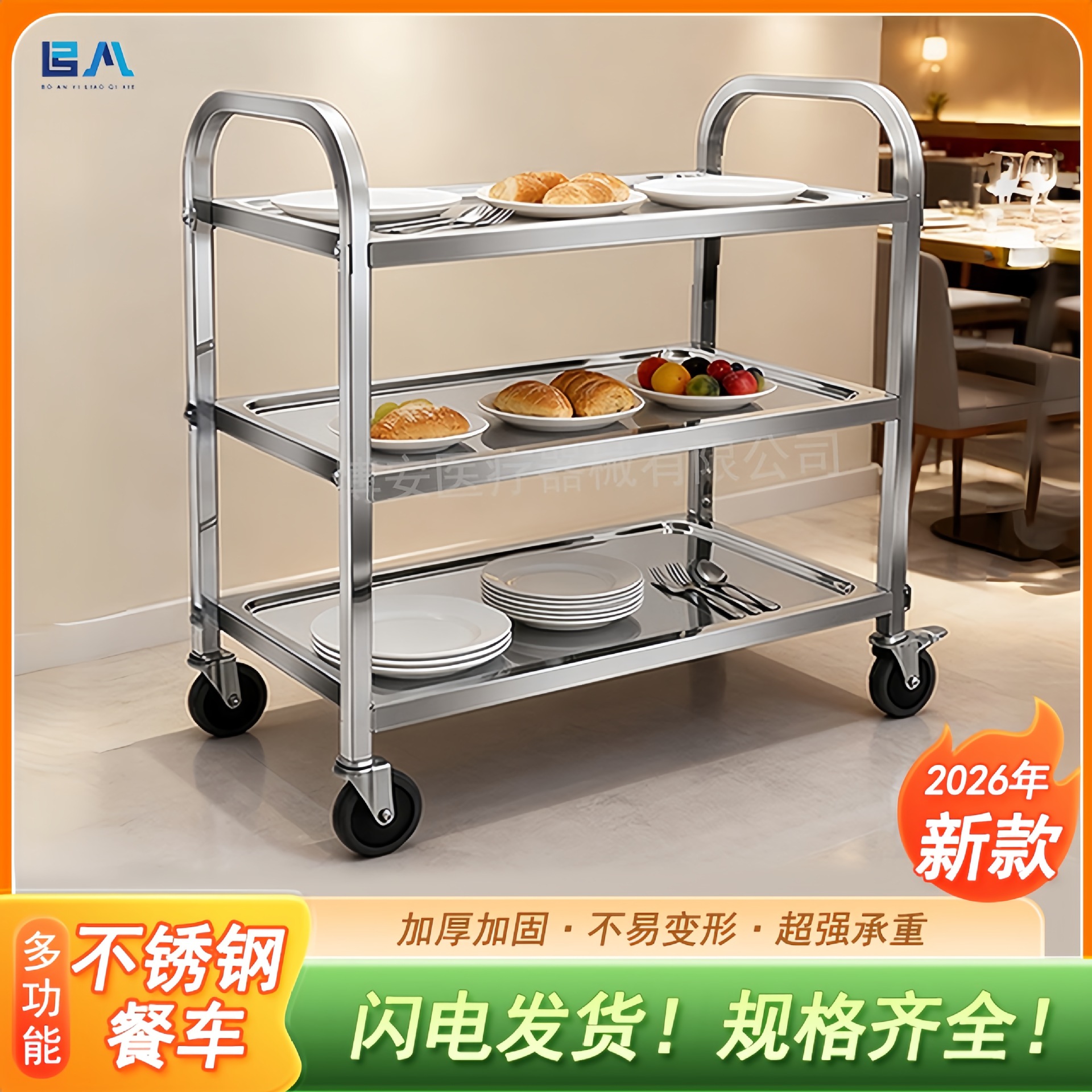 源头工厂不锈钢三层餐车加厚钢管静音轮酒店餐厅摆摊收碗车批发