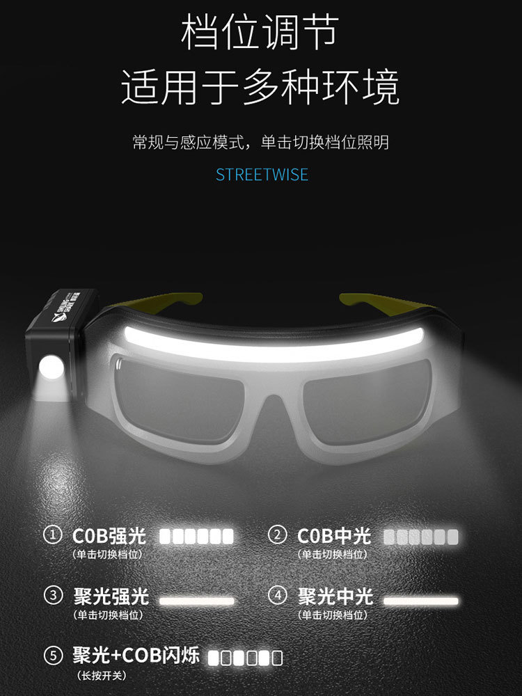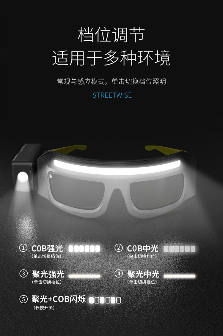 Налобный фонарь с мощным светом и длительным временем автономной работы, литиевая батарея, силиконовые очки-фонарь с датчиком для велоспорта на открытом воздухе, ветрозащитный фонарь для рыбалки, фонарь для ночной рыбалки