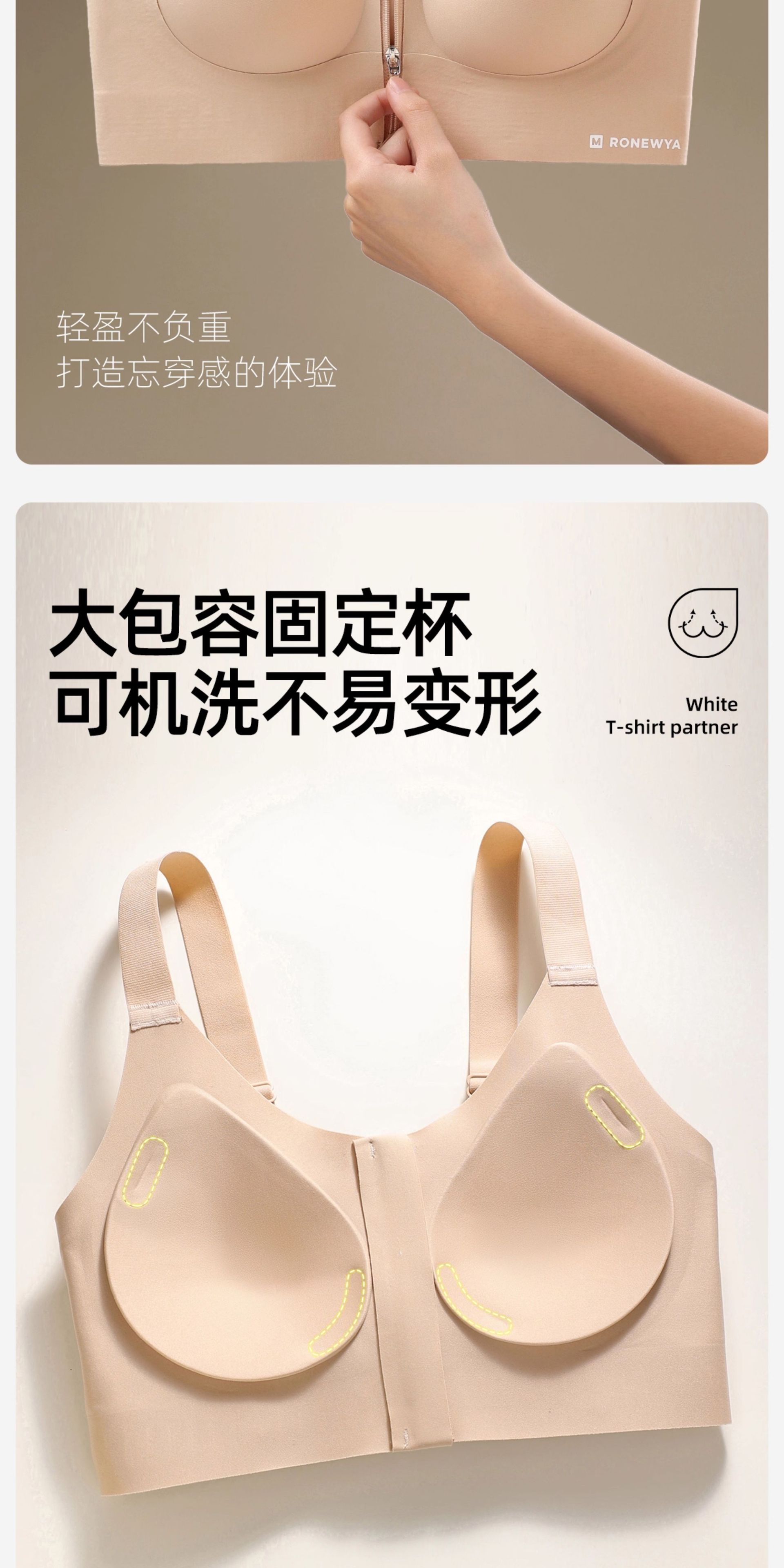 Бесследный; дышащий; Комфортный; Боковой сбор; Закройте вторичные груди; Большая грудь кажется маленькой