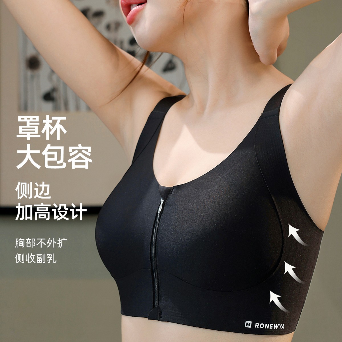 Спортивный тонкий бюстгальтер больших размеров для женщин с полным покрытием, боковой сборкой груди, противопровисающим эффектом, молнией, делает большой бюст меньше.