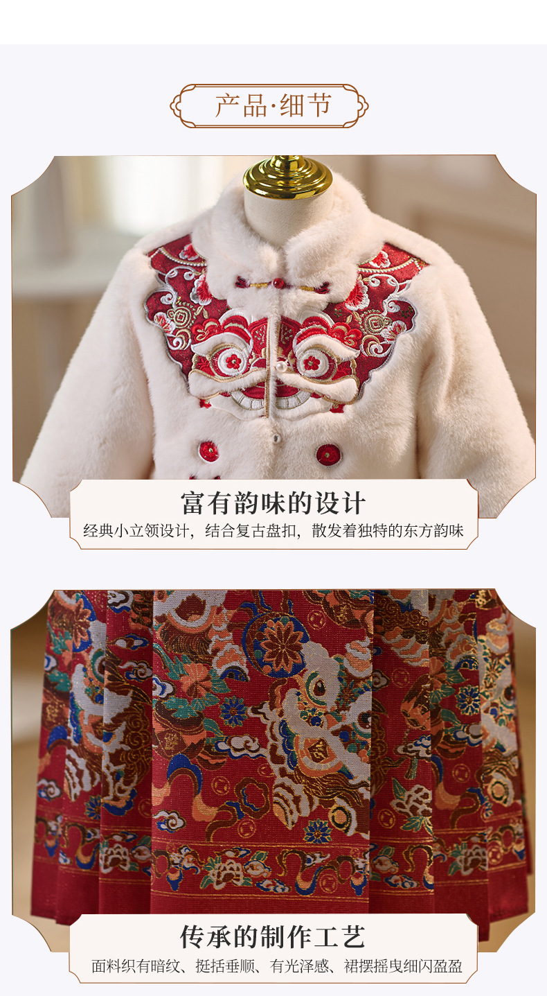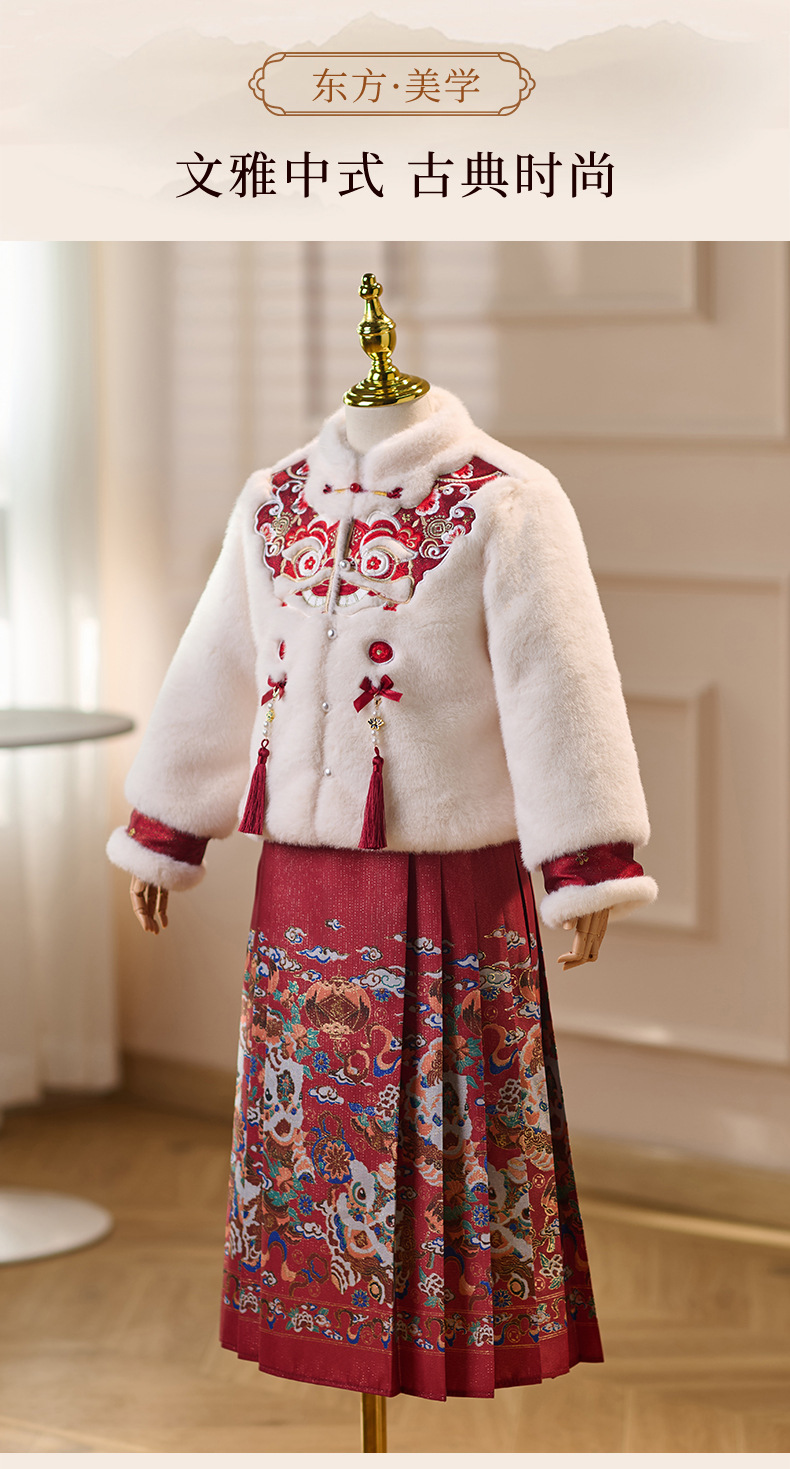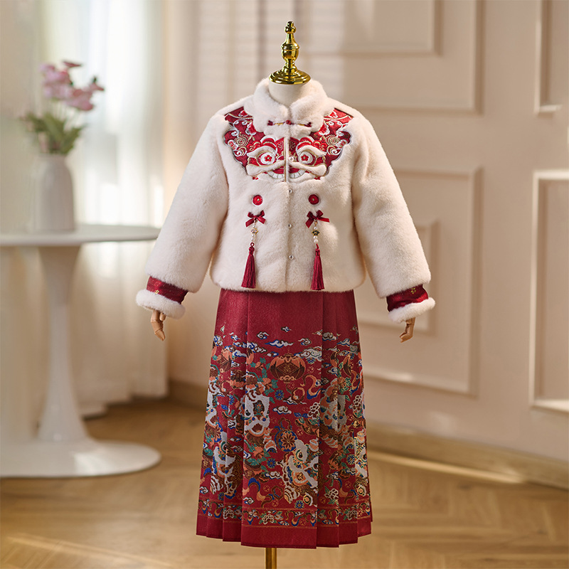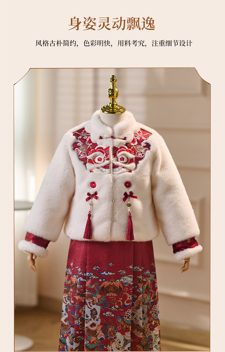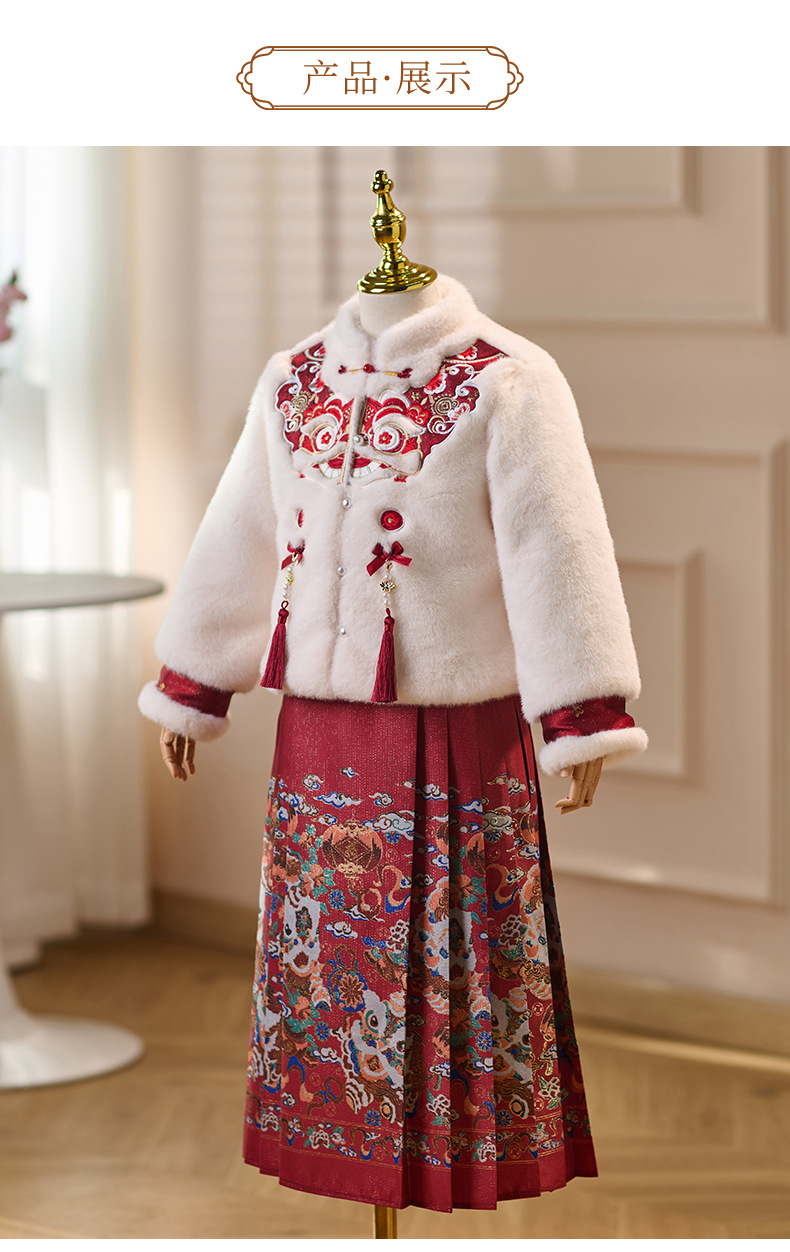 女童拜年服冬季新款中国风唐装小女孩加绒加厚马面裙汉服套装