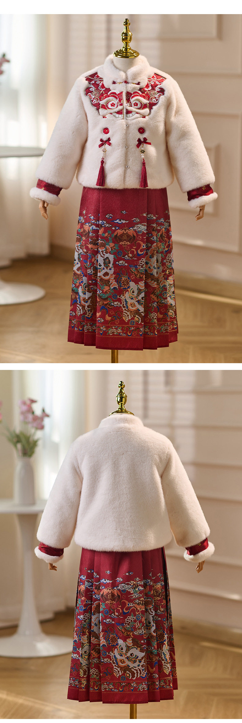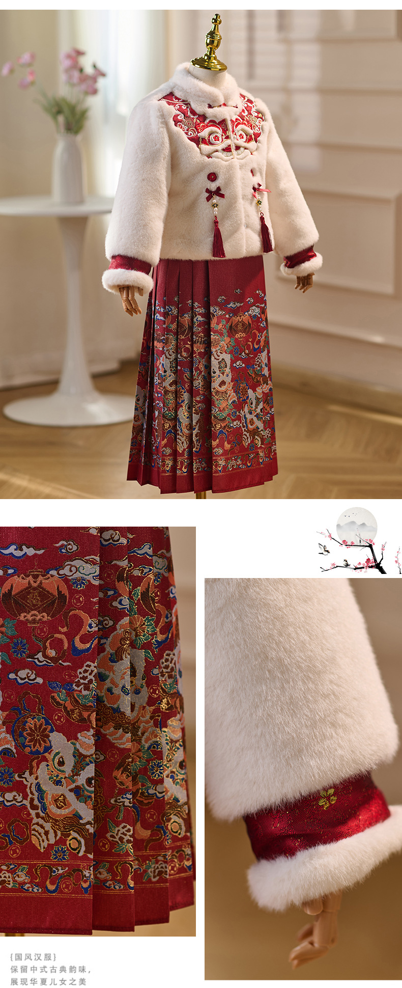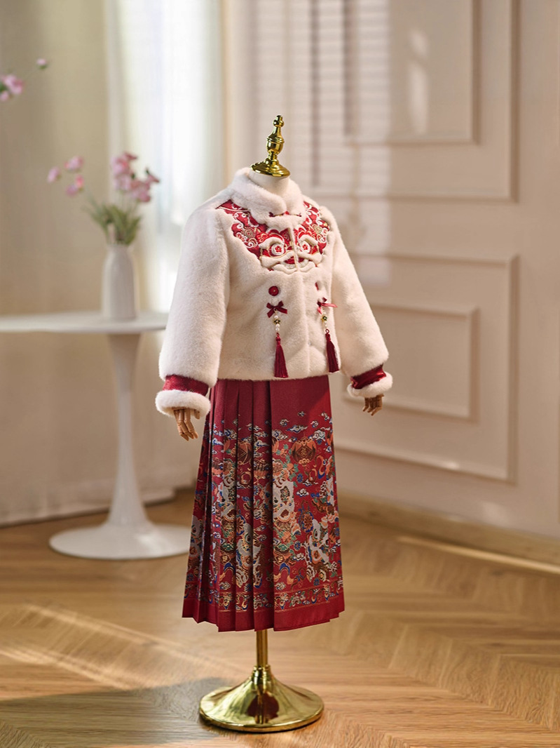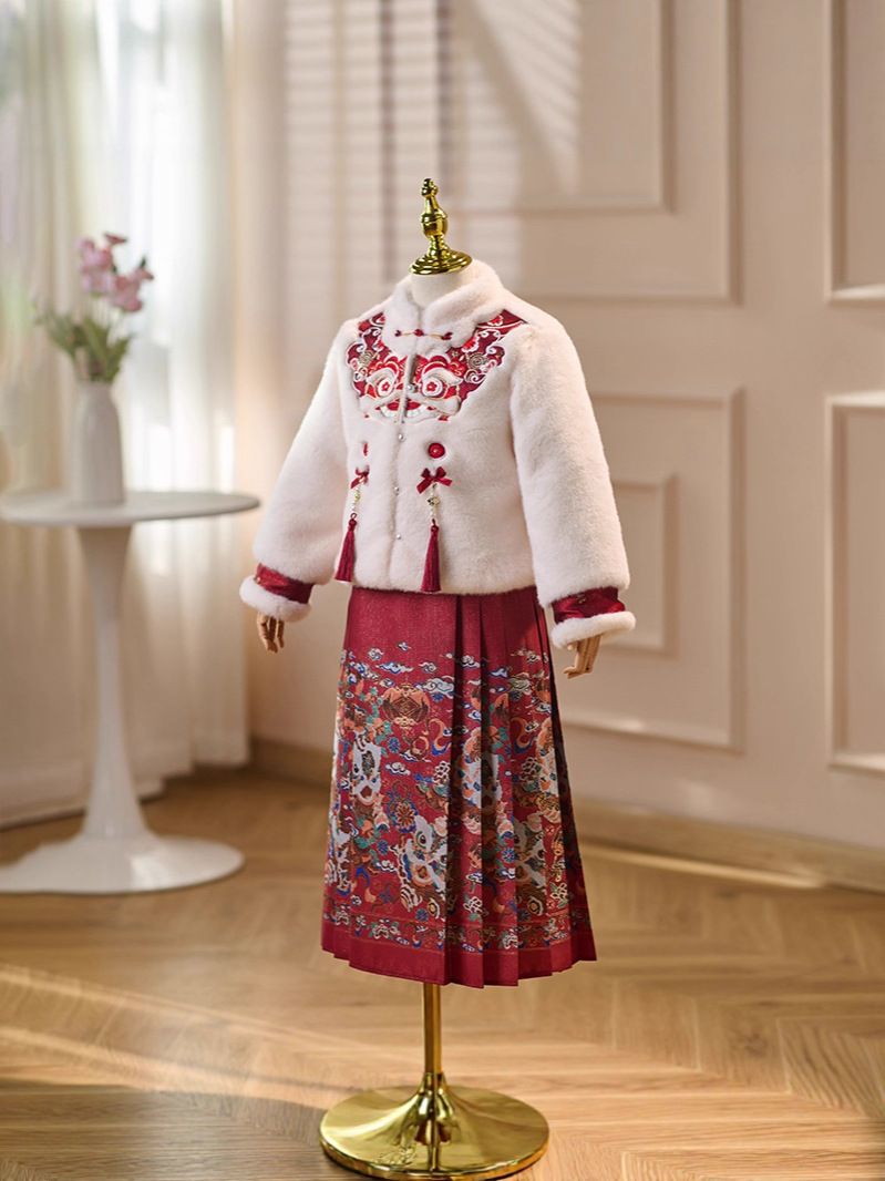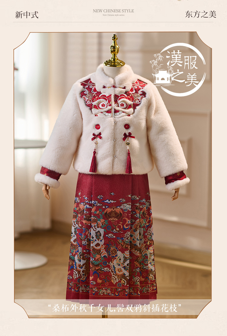 女童拜年服冬季新款中国风唐装小女孩加绒加厚马面裙汉服套装