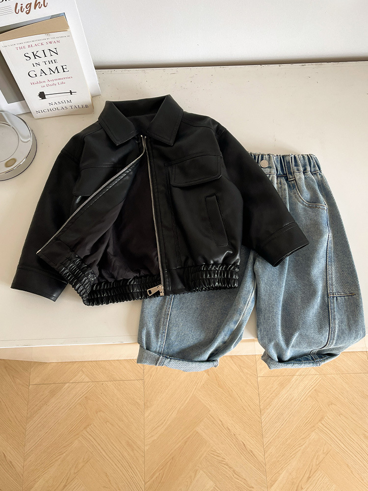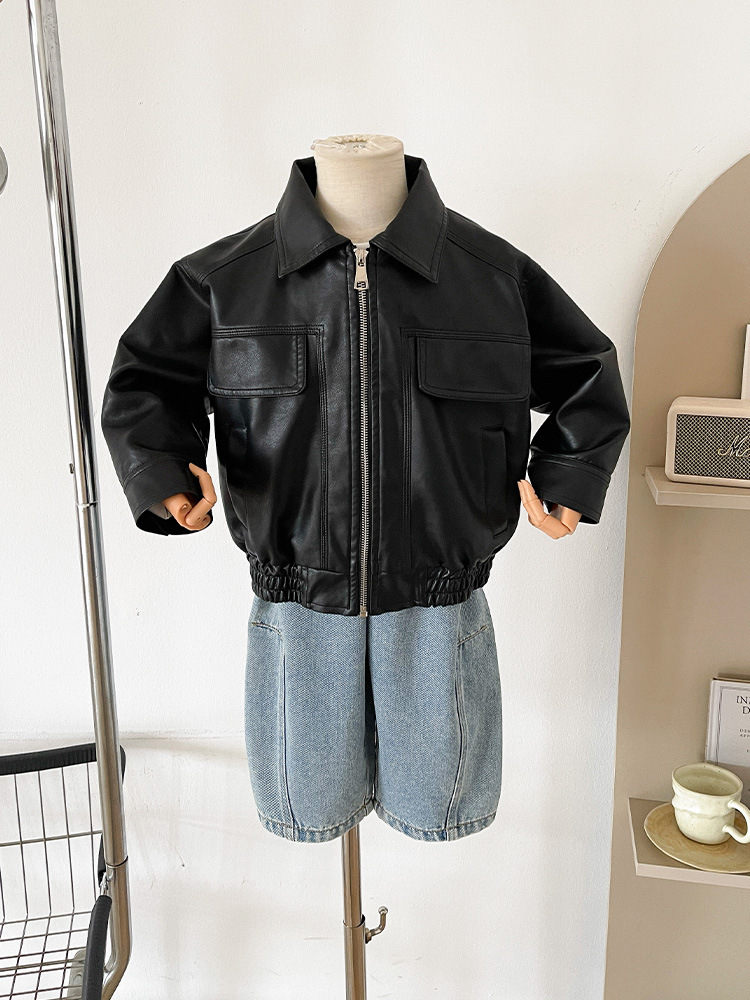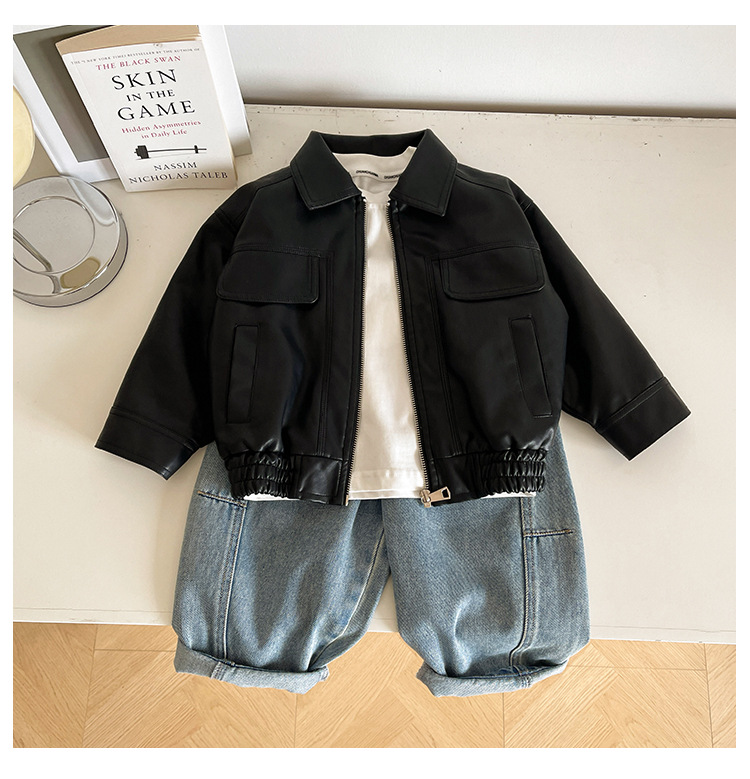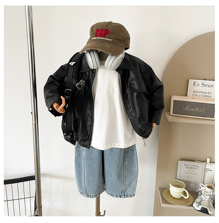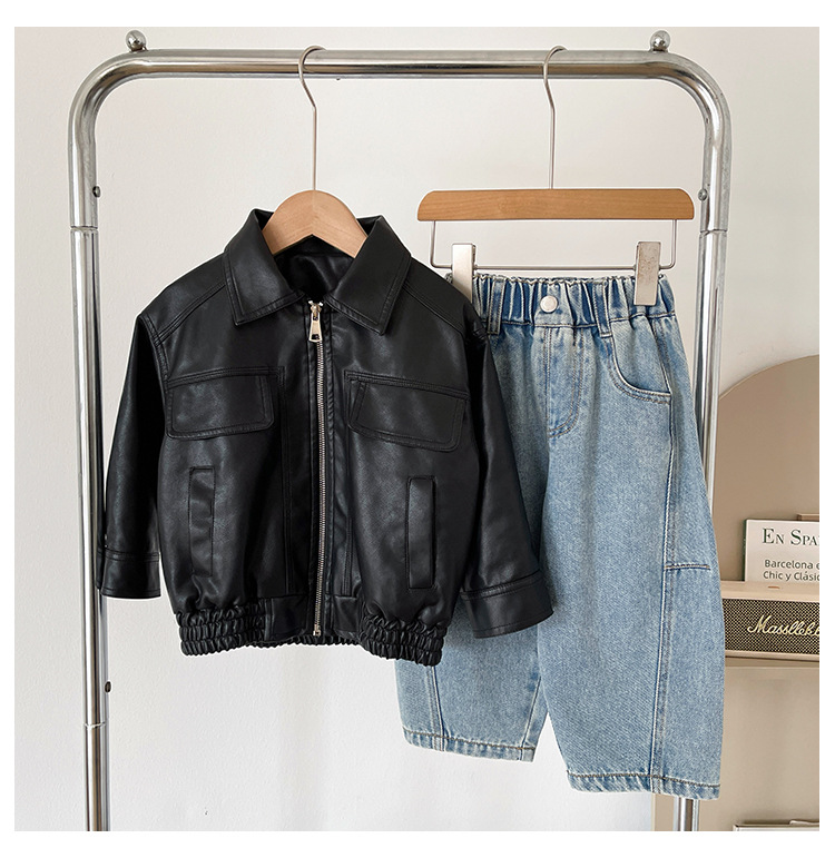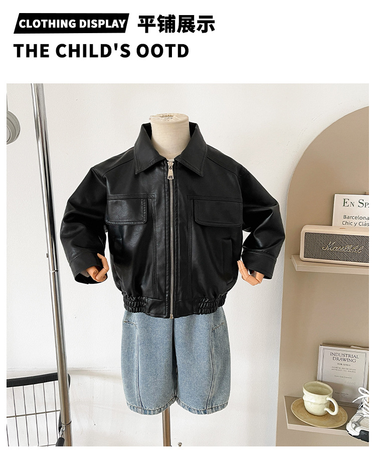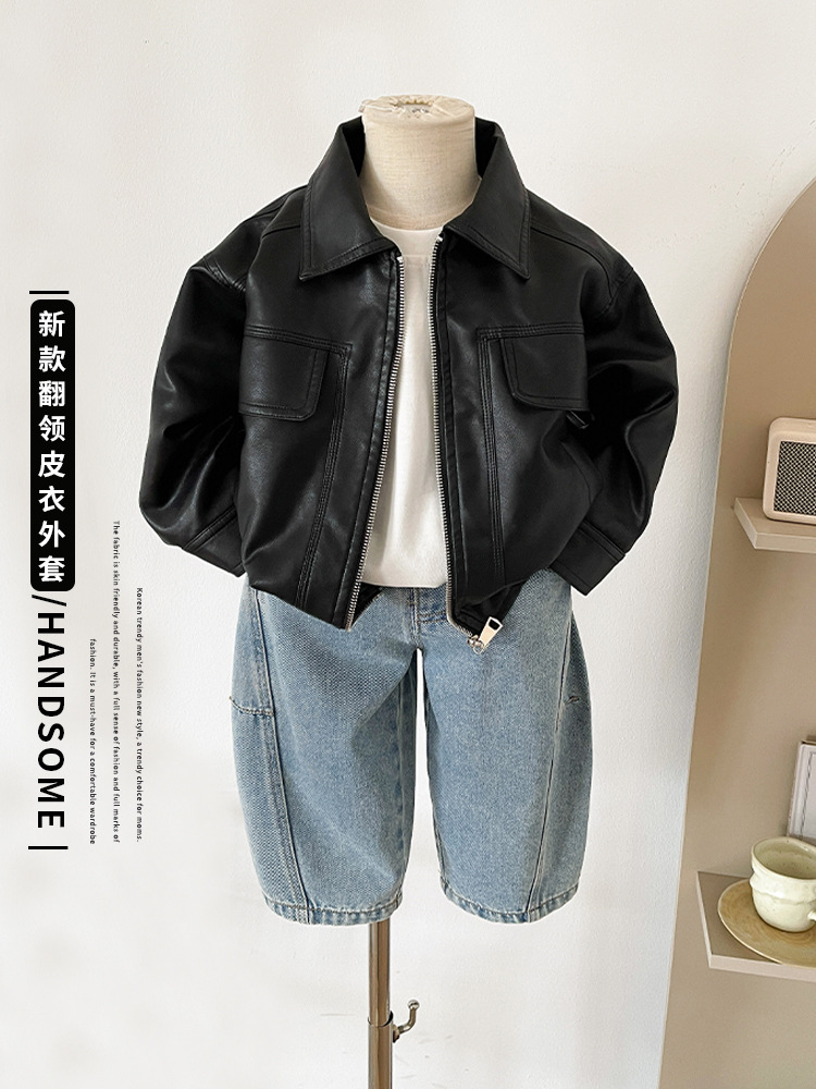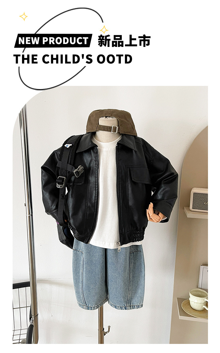 风之谷26早春新款潮酷百搭儿童机车皮衣外套洋气痞帅男童夹克新款