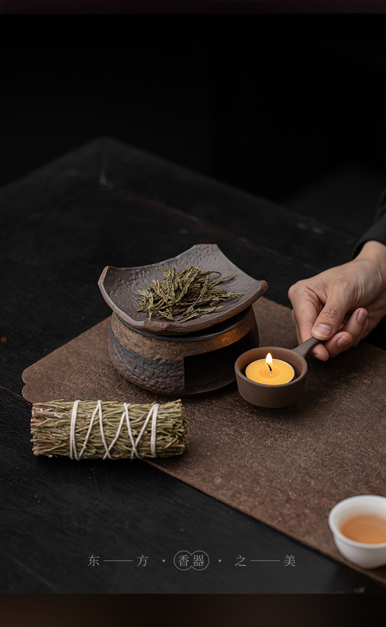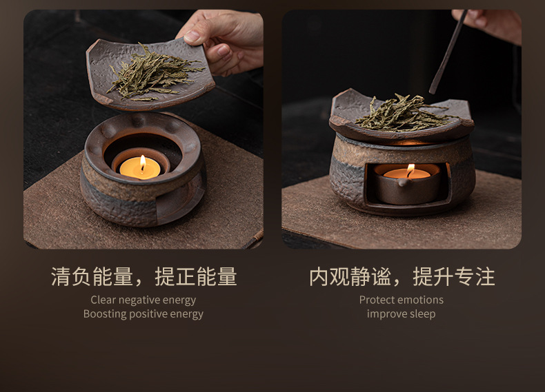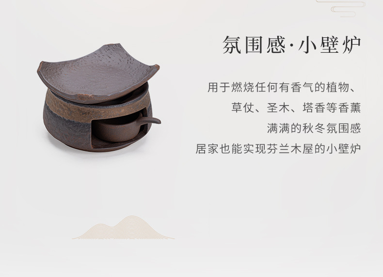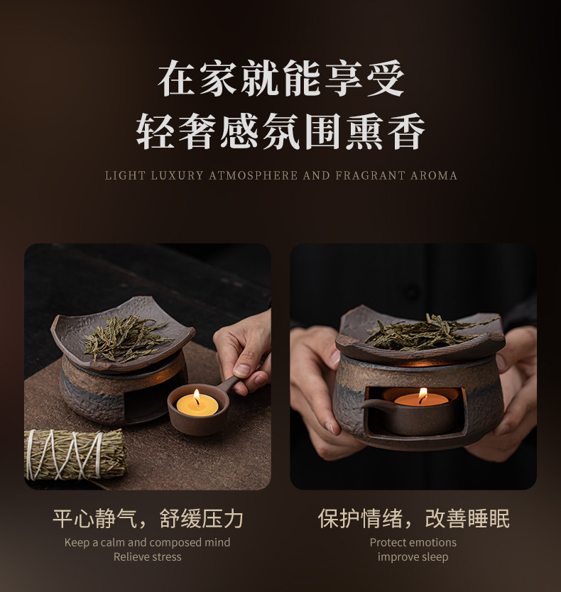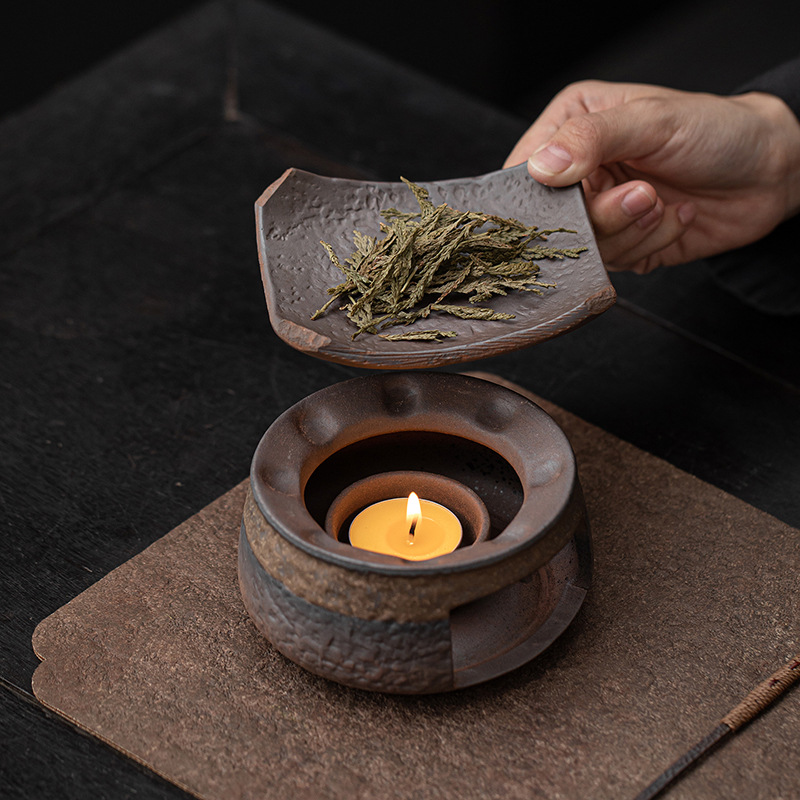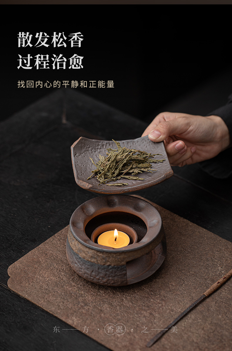 日式粗陶香薰壁炉蜡烛加热底座秘鲁圣木鼠尾草雪松氛围熏香器摆件