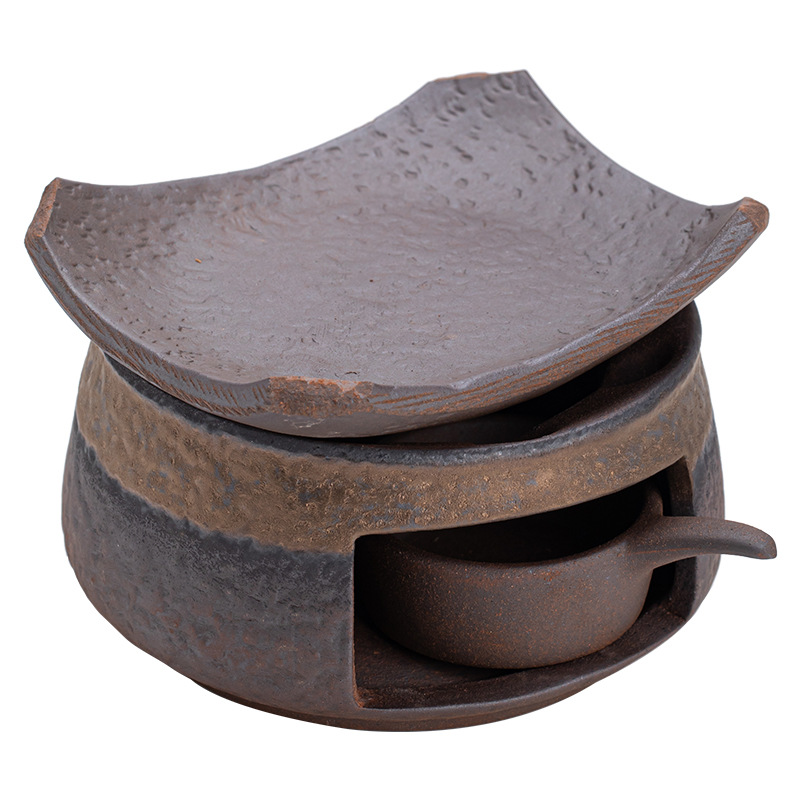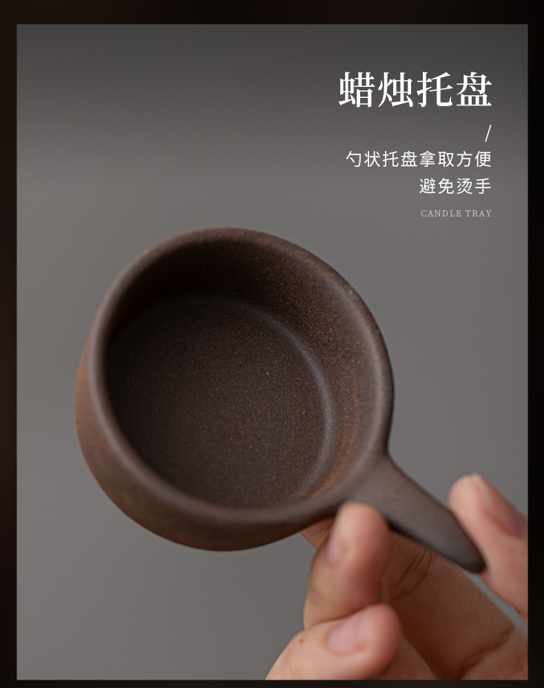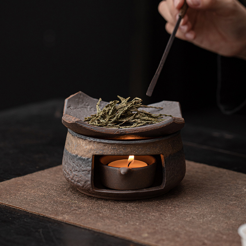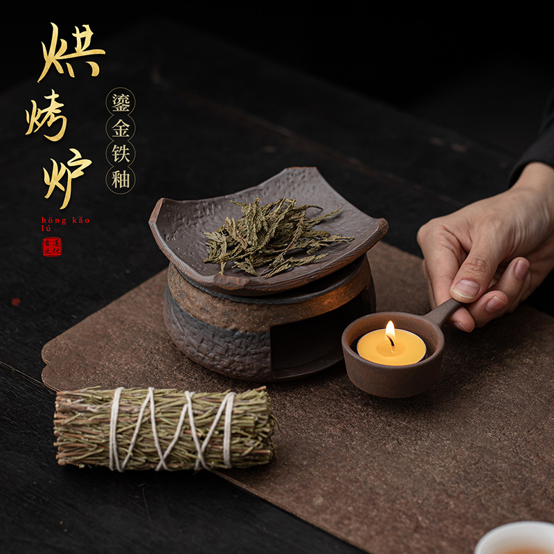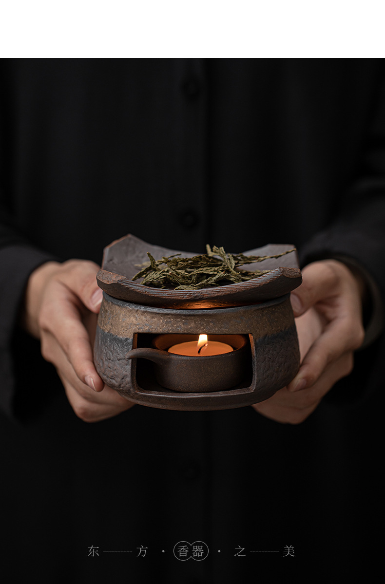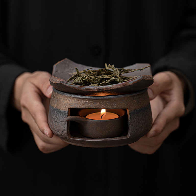 日式粗陶香薰壁炉蜡烛加热底座秘鲁圣木鼠尾草雪松氛围熏香器摆件