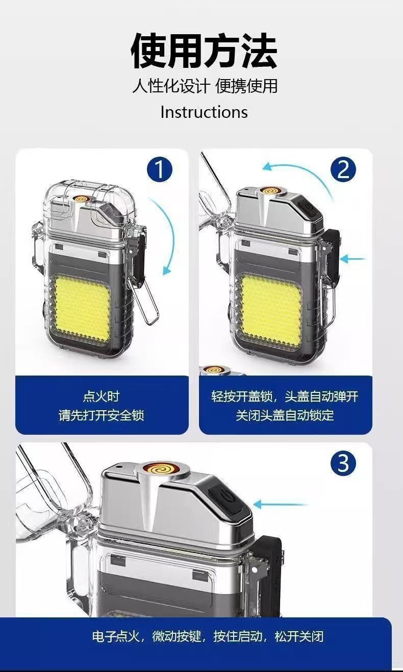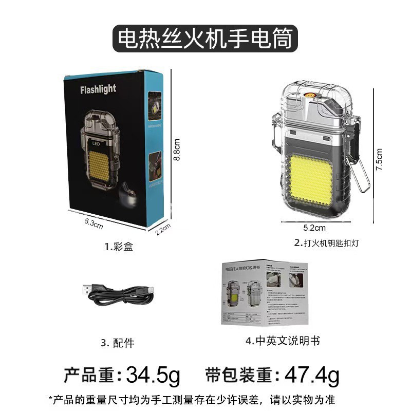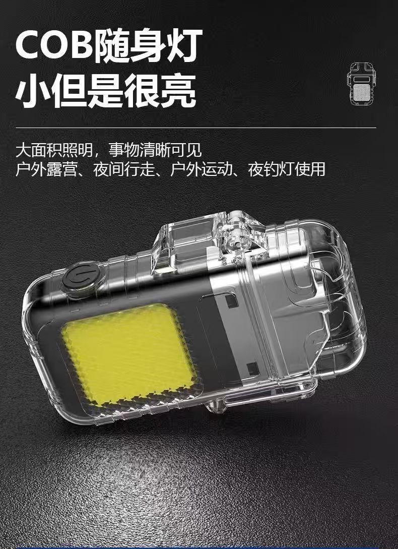 钥匙灯小巧高亮COB多功能应急灯随身灯户外usb充电电弧打火机电筒