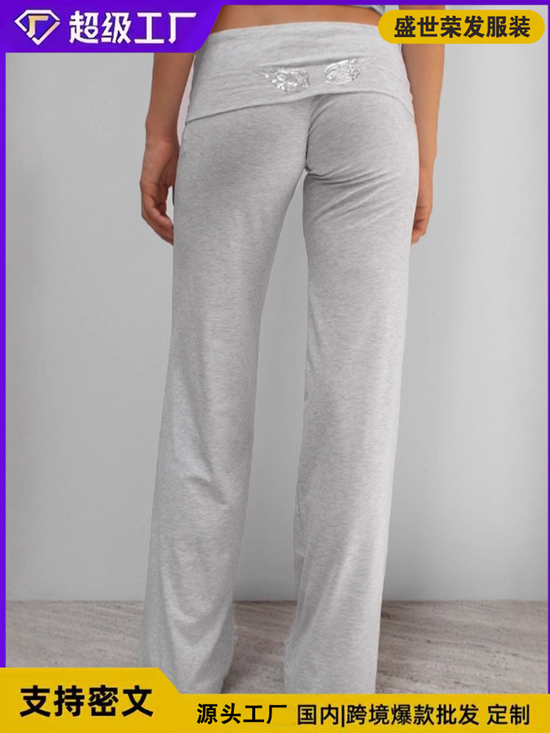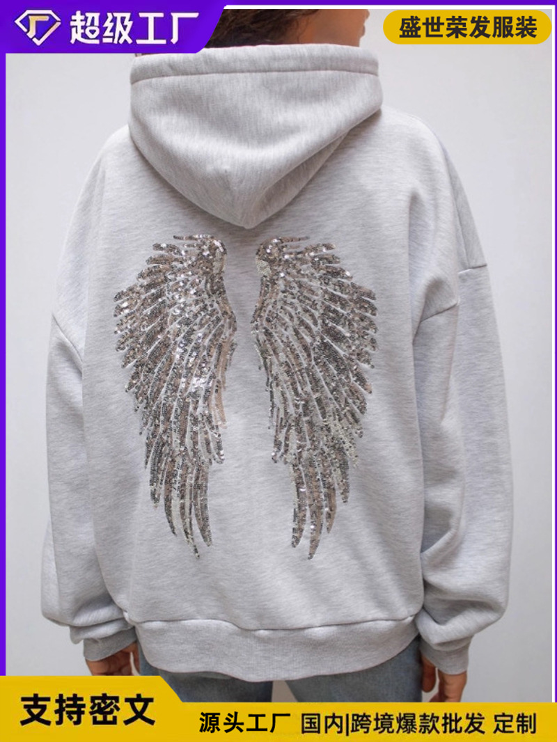 现货欧美跨境外贸独立站外亚马逊时尚百搭纯色翅膀珠片绣休闲套装