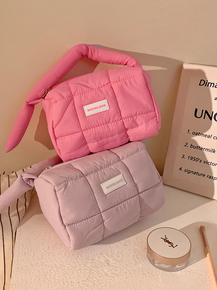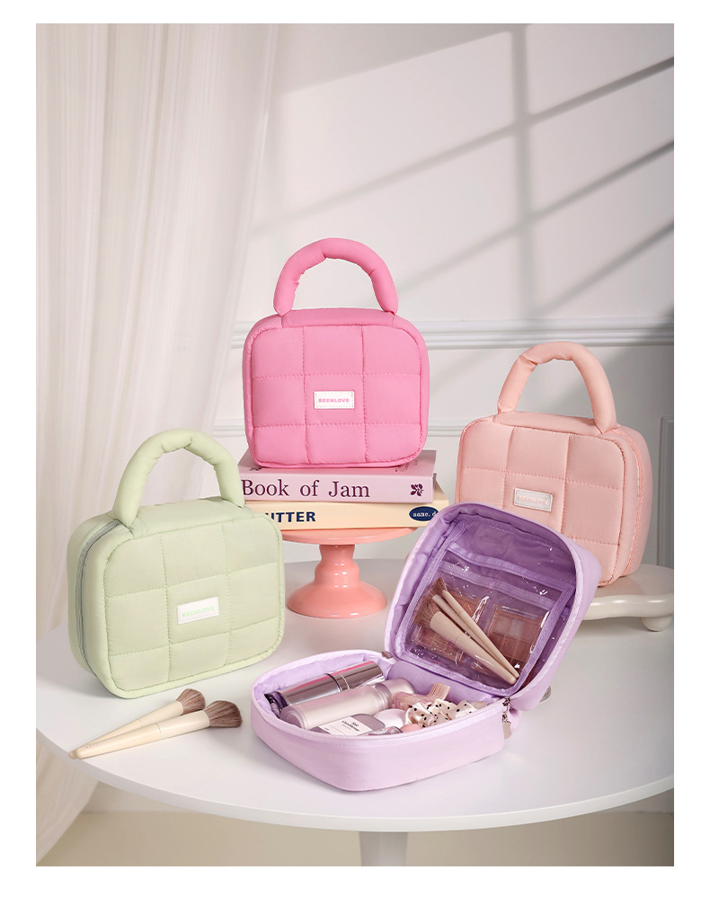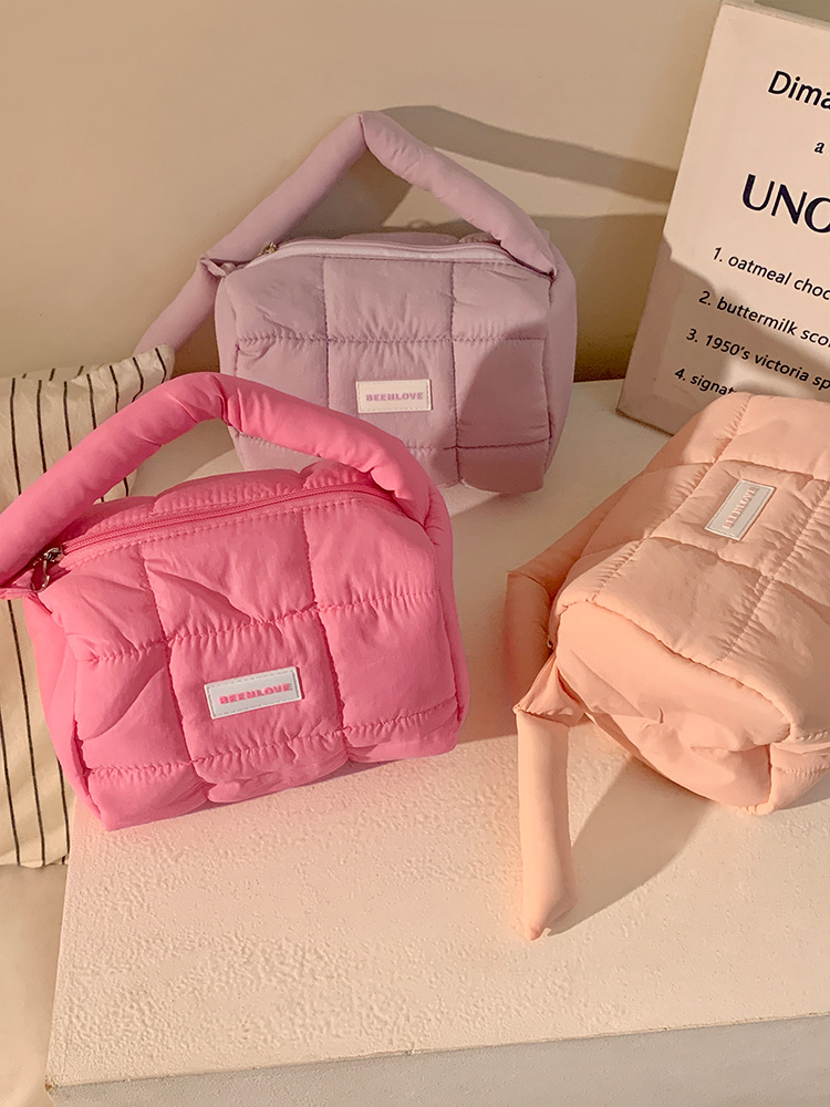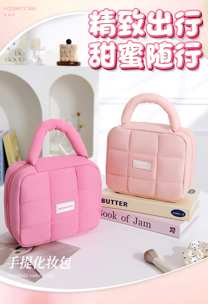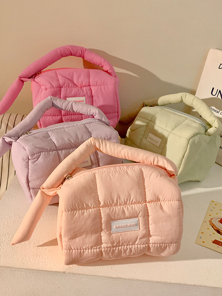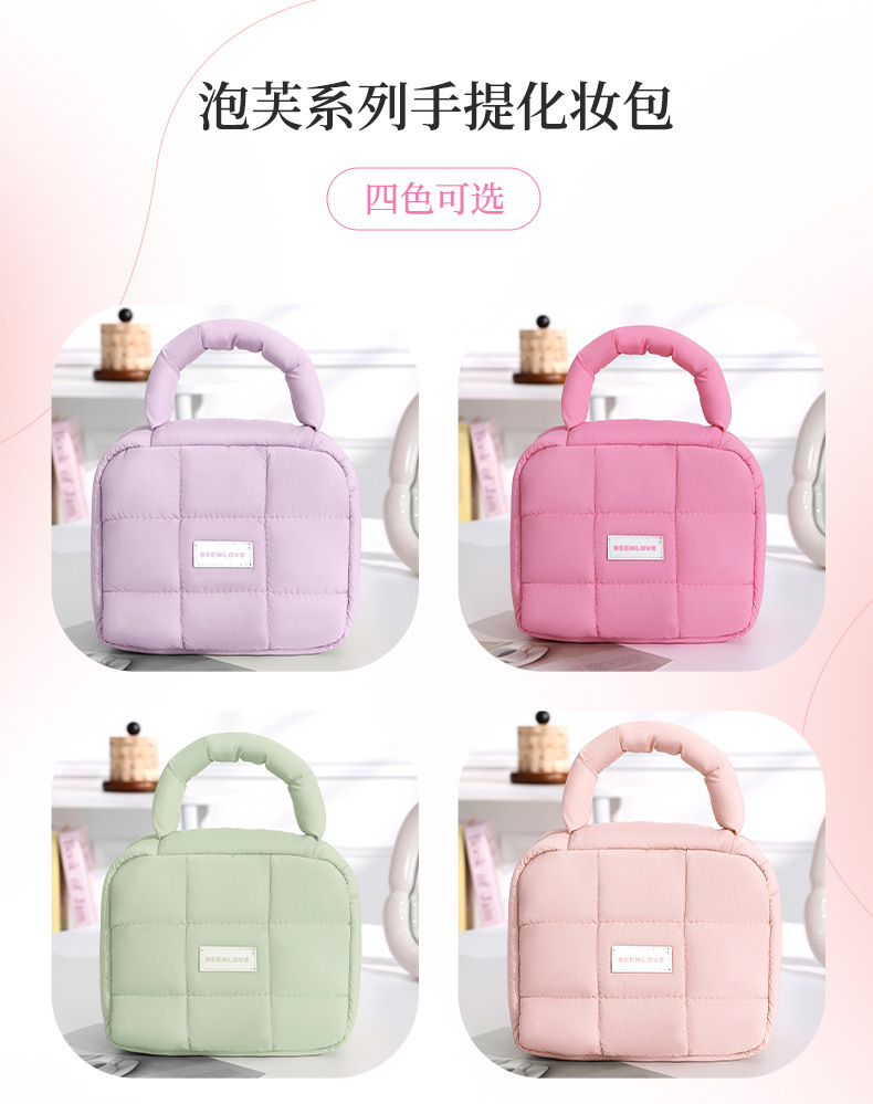 跨境热卖泡芙手提收纳包多巴胺色系收纳包化妆包大容量高级感