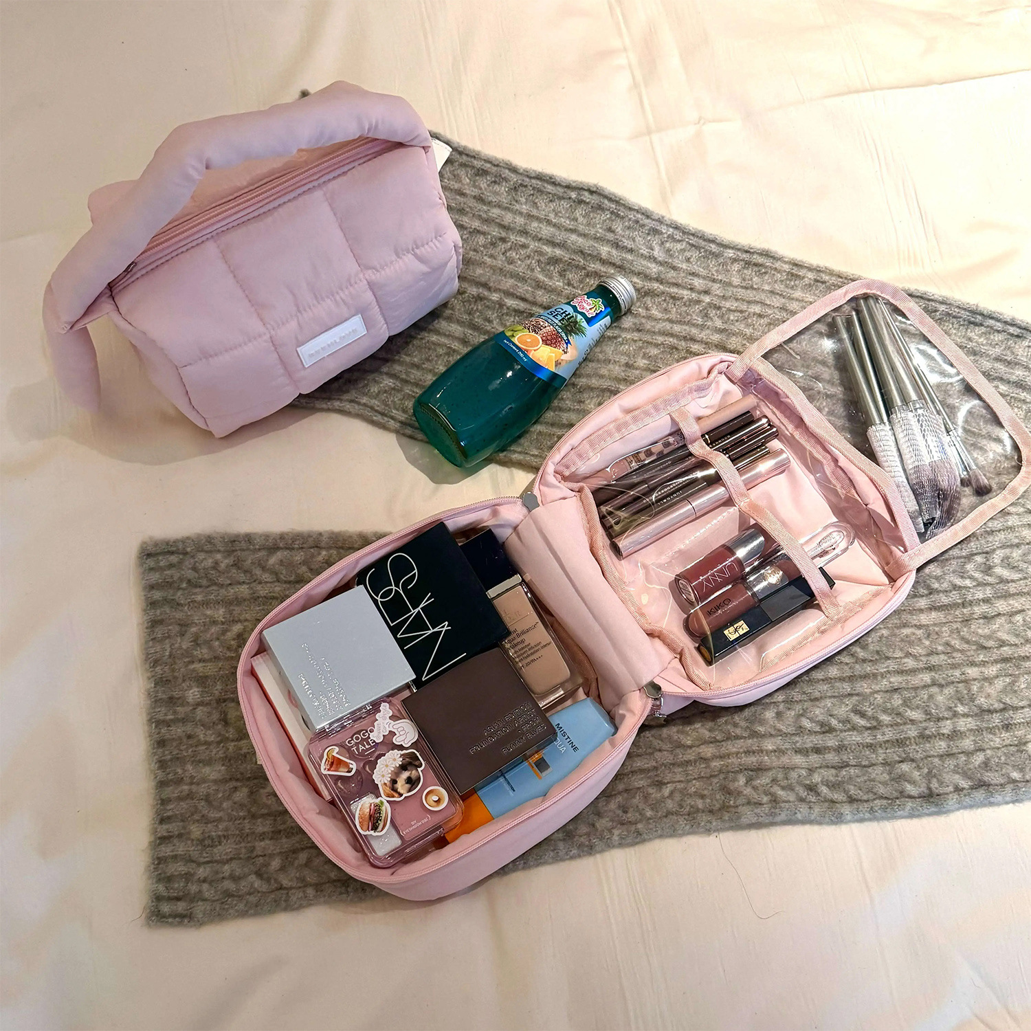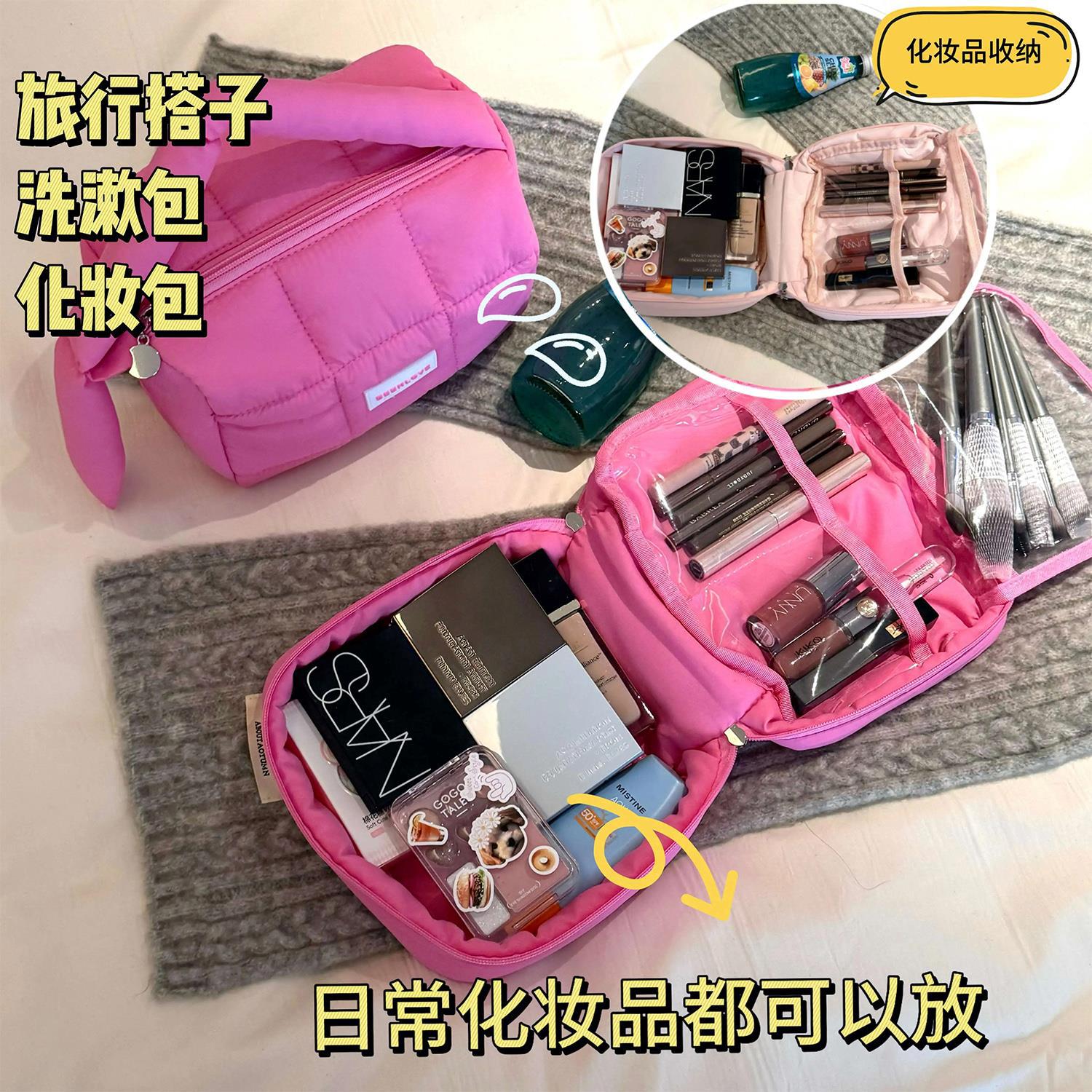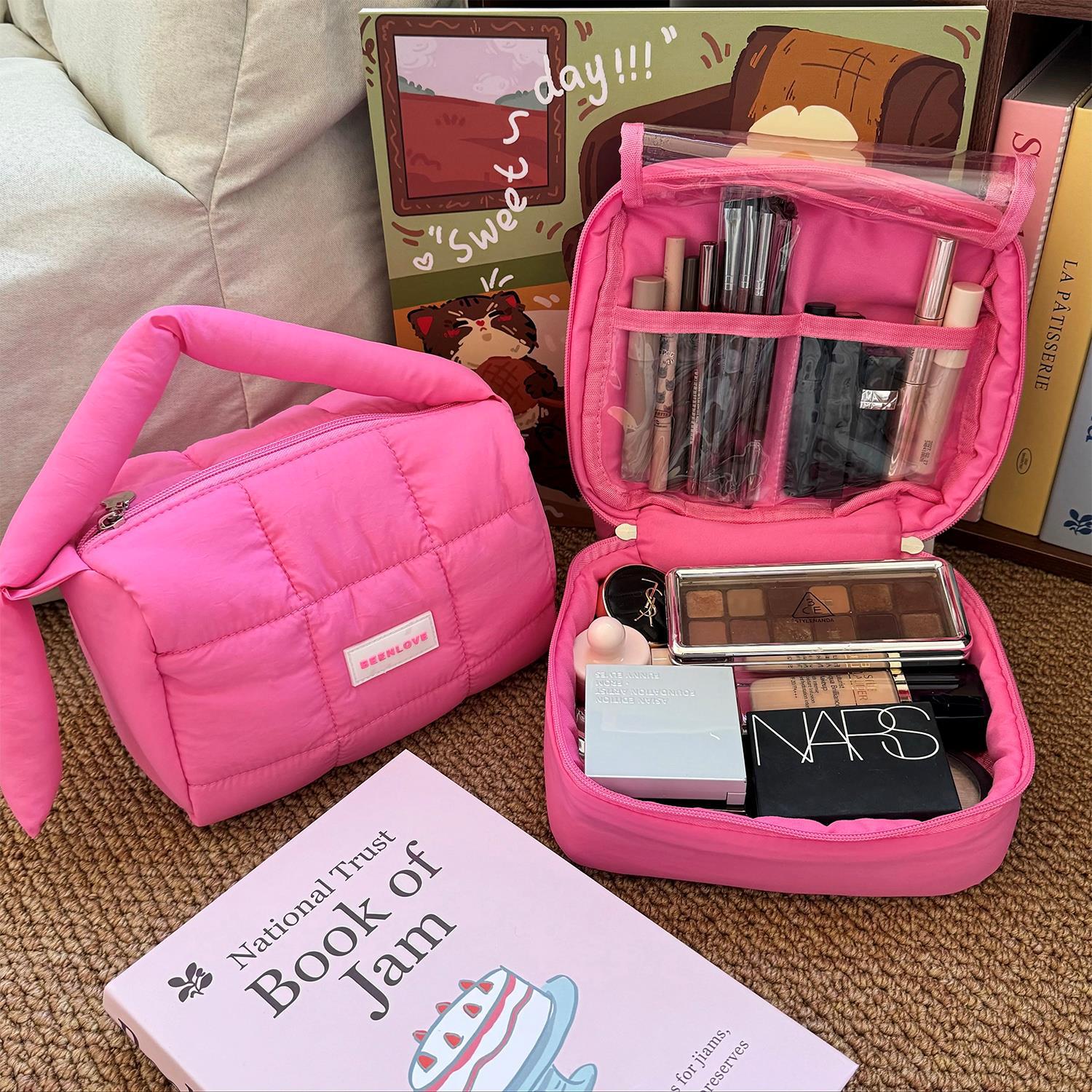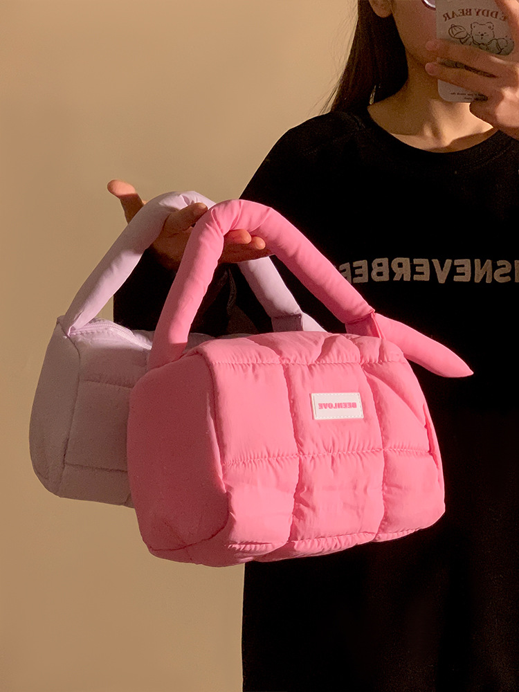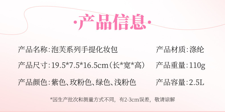 跨境热卖泡芙手提收纳包多巴胺色系收纳包化妆包大容量高级感