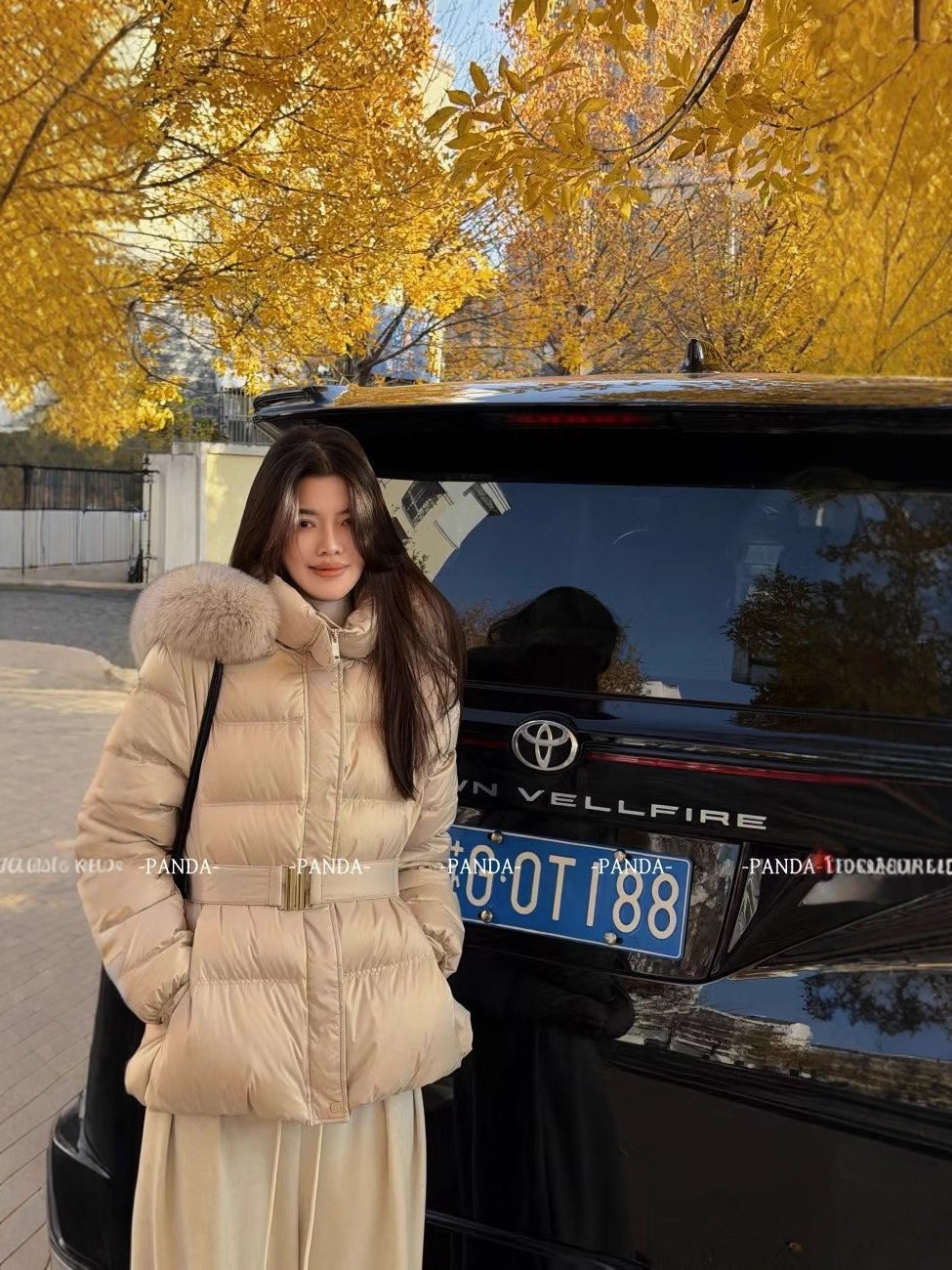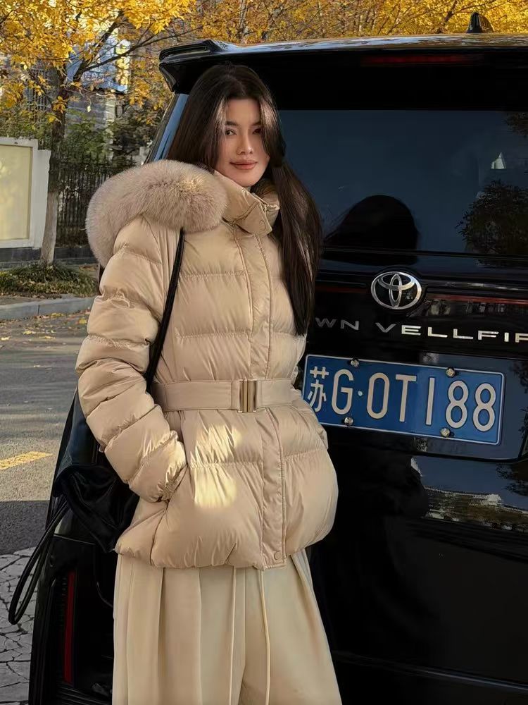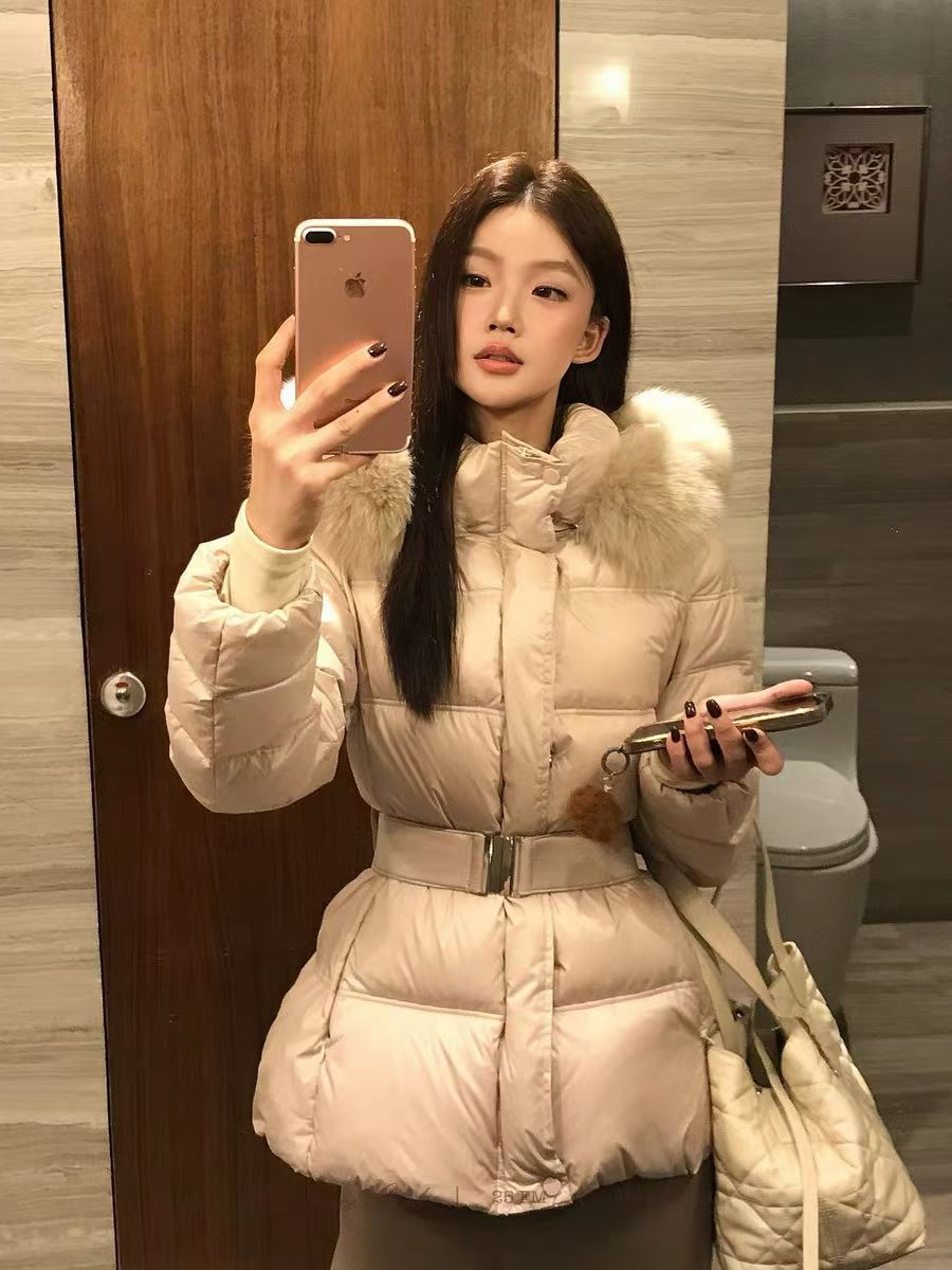 冬季新款韩版千金款90绒加厚羽绒服轻奢名媛风保暖毛领连帽收腰女