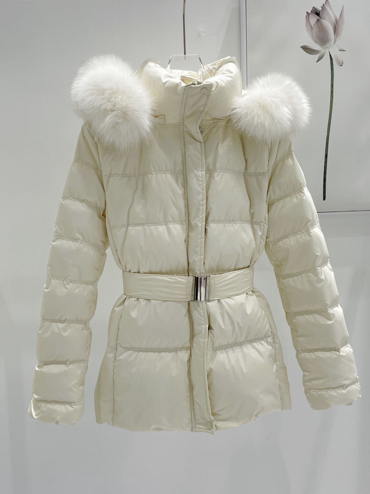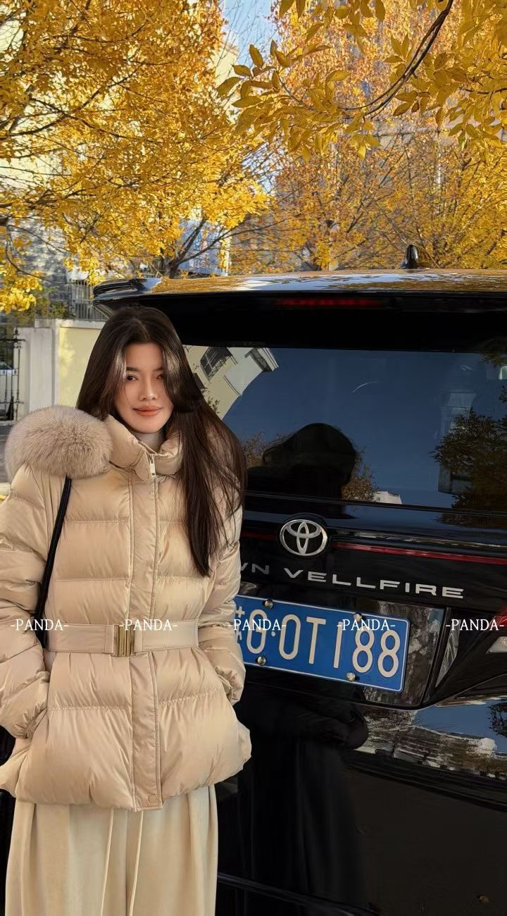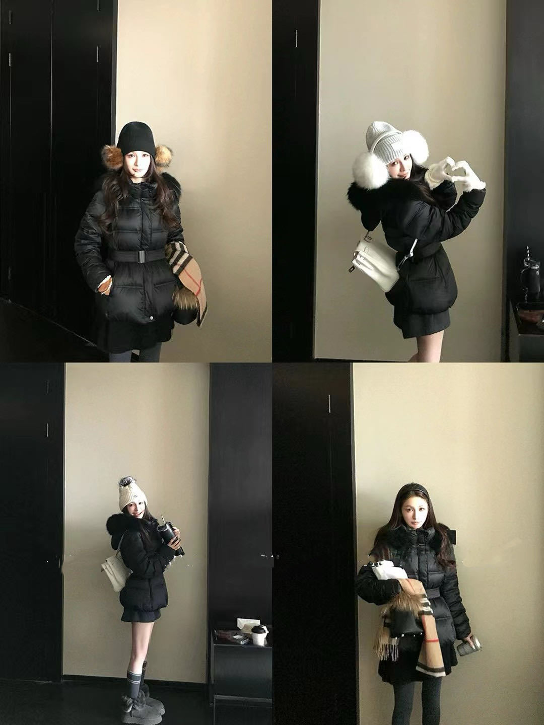冬季新款韩版千金款90绒加厚羽绒服轻奢名媛风保暖毛领连帽收腰女
