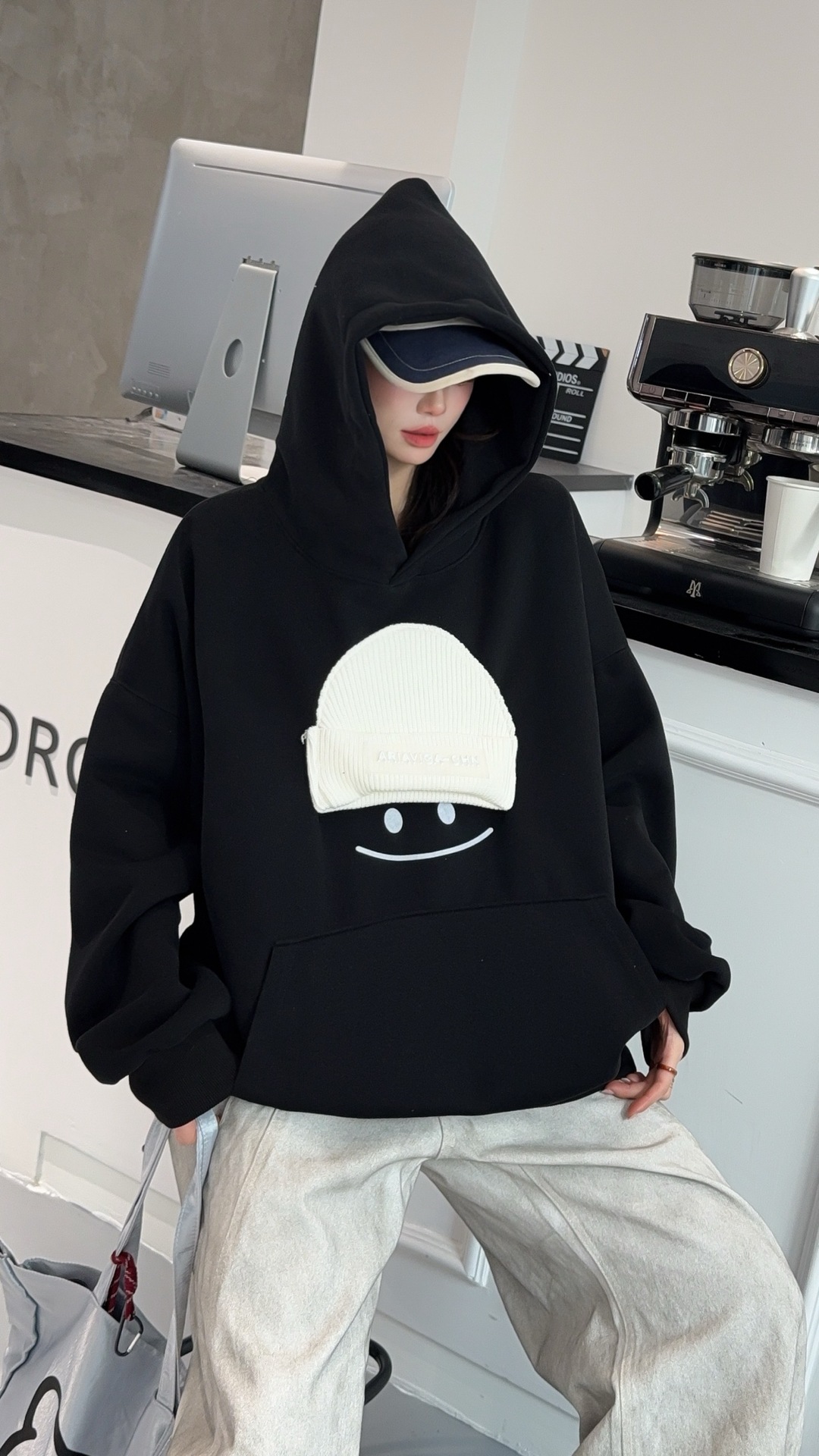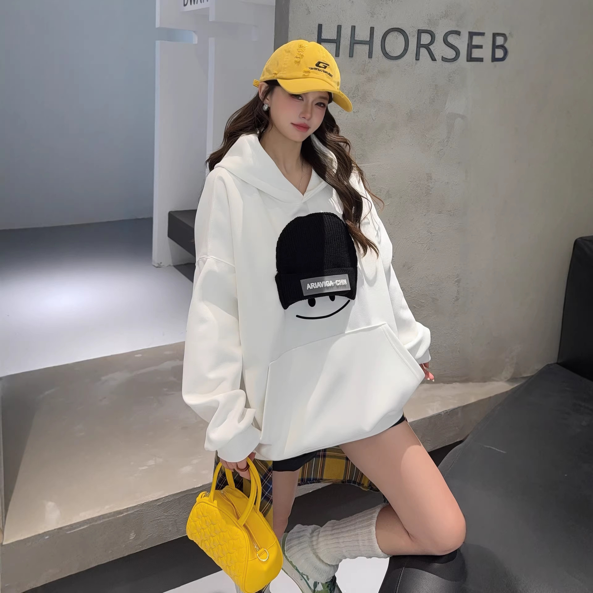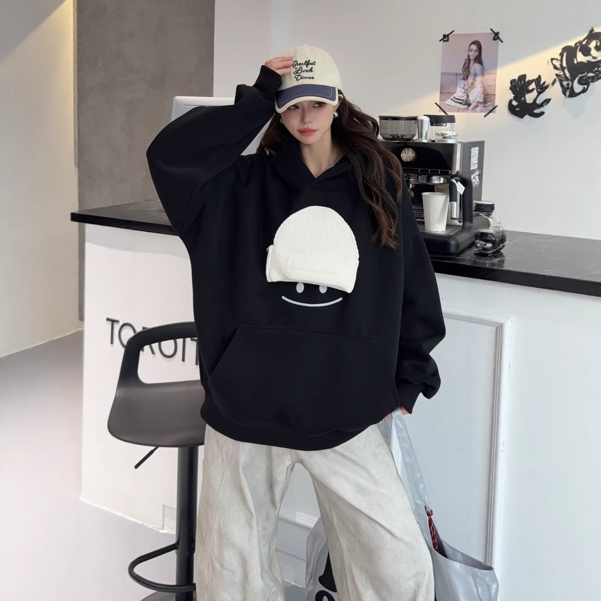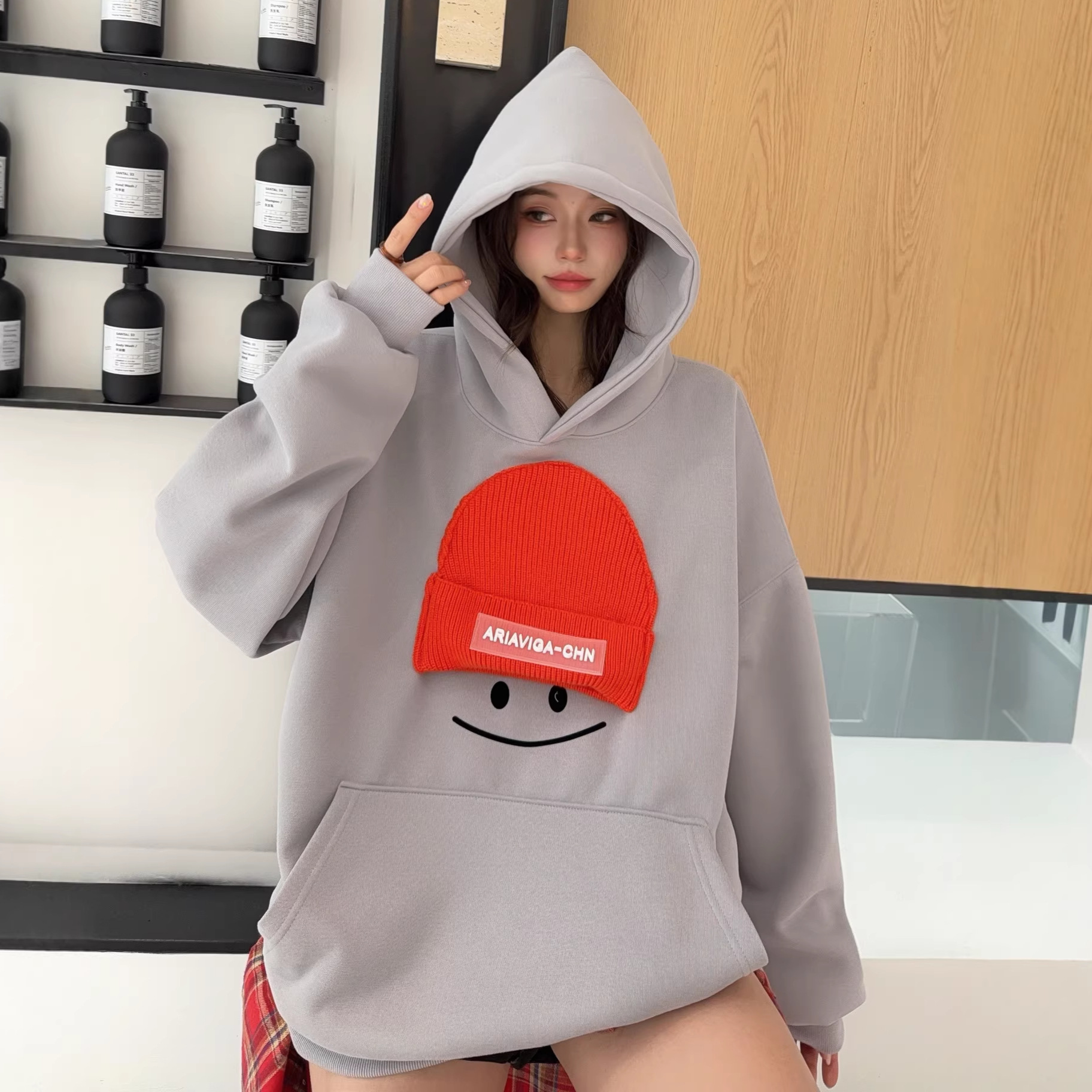 小帽笑脸连帽卫衣女2026新款爆款春季宽松大码上衣时尚洋气外套
